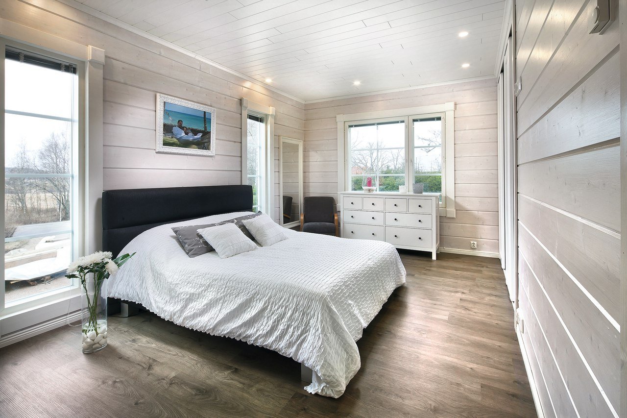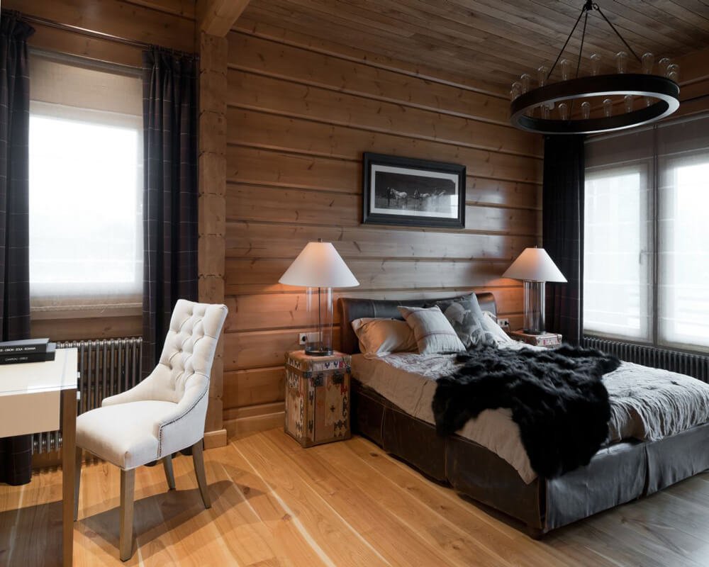 Спальня в деревянном доме из бруса