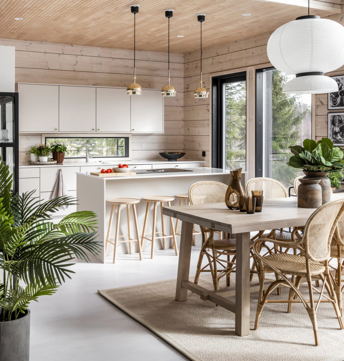 Кухня в стиле Сканди в деревянном доме