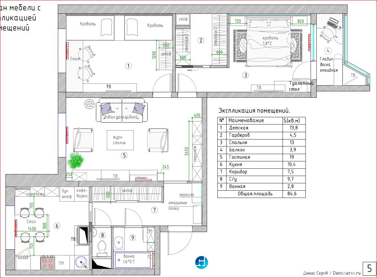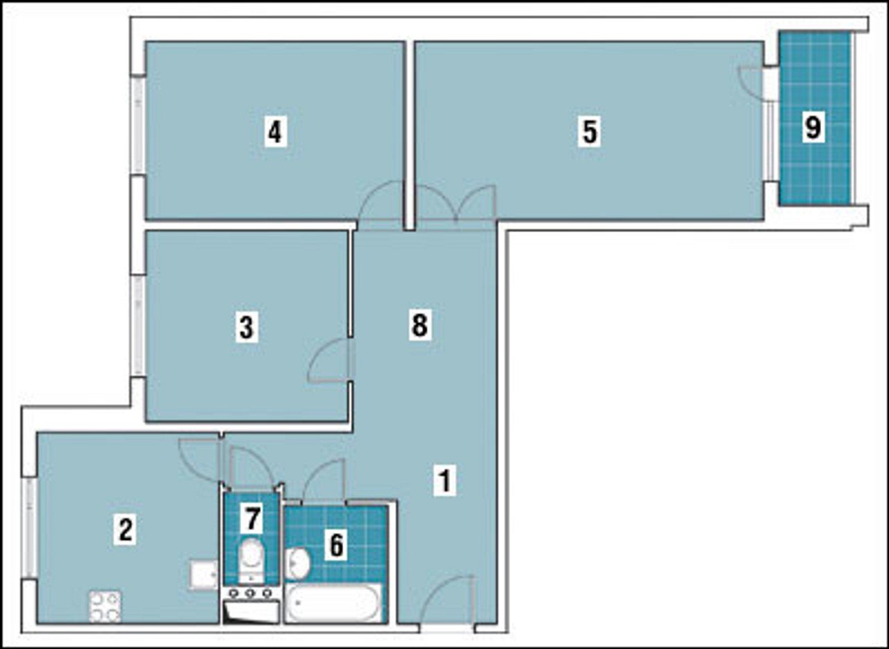 Перепланировки в четырехкомнатной квартире в панельном доме КОПЭ