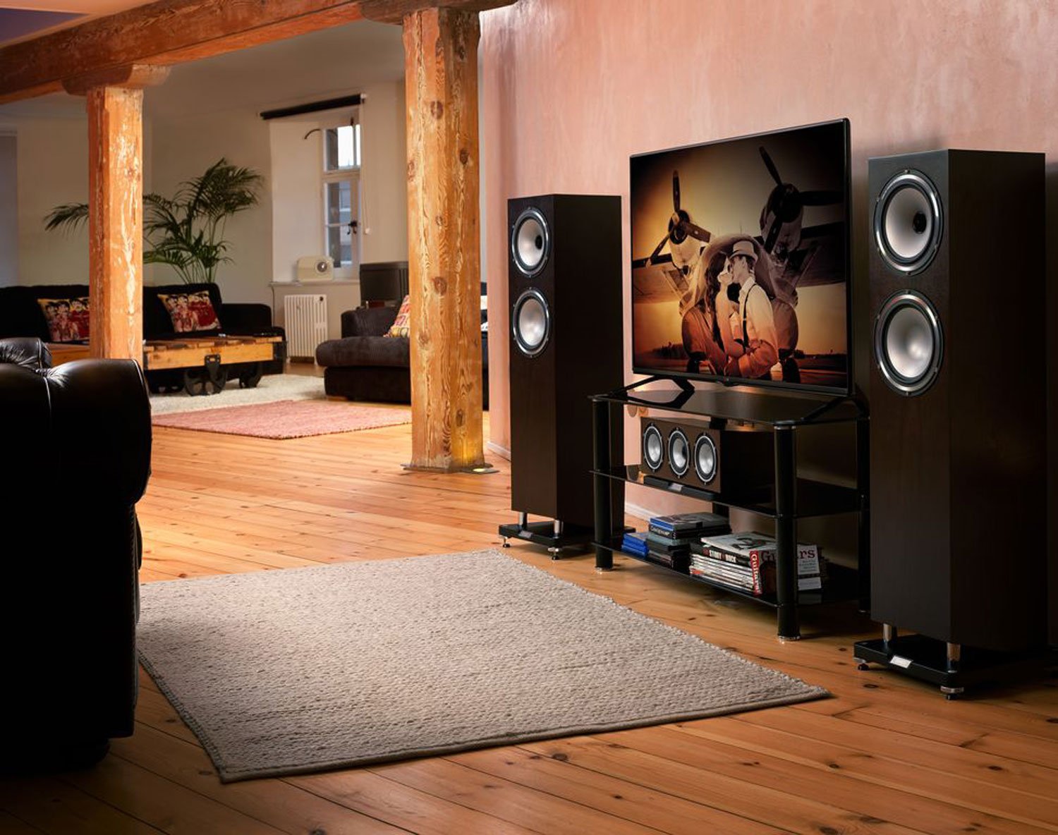 Колонки в интерьере гостиной