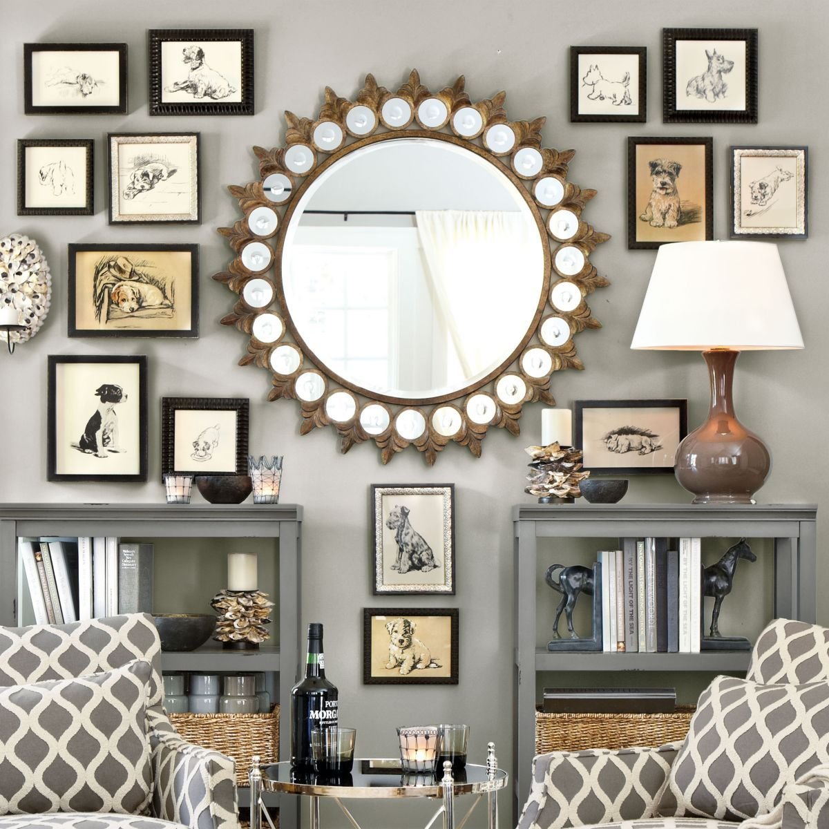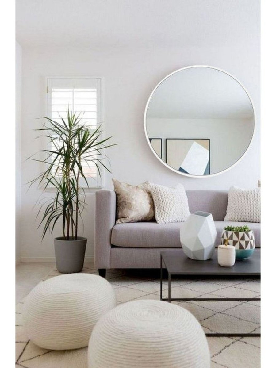 Круглое зеркало в интерьере гостиной