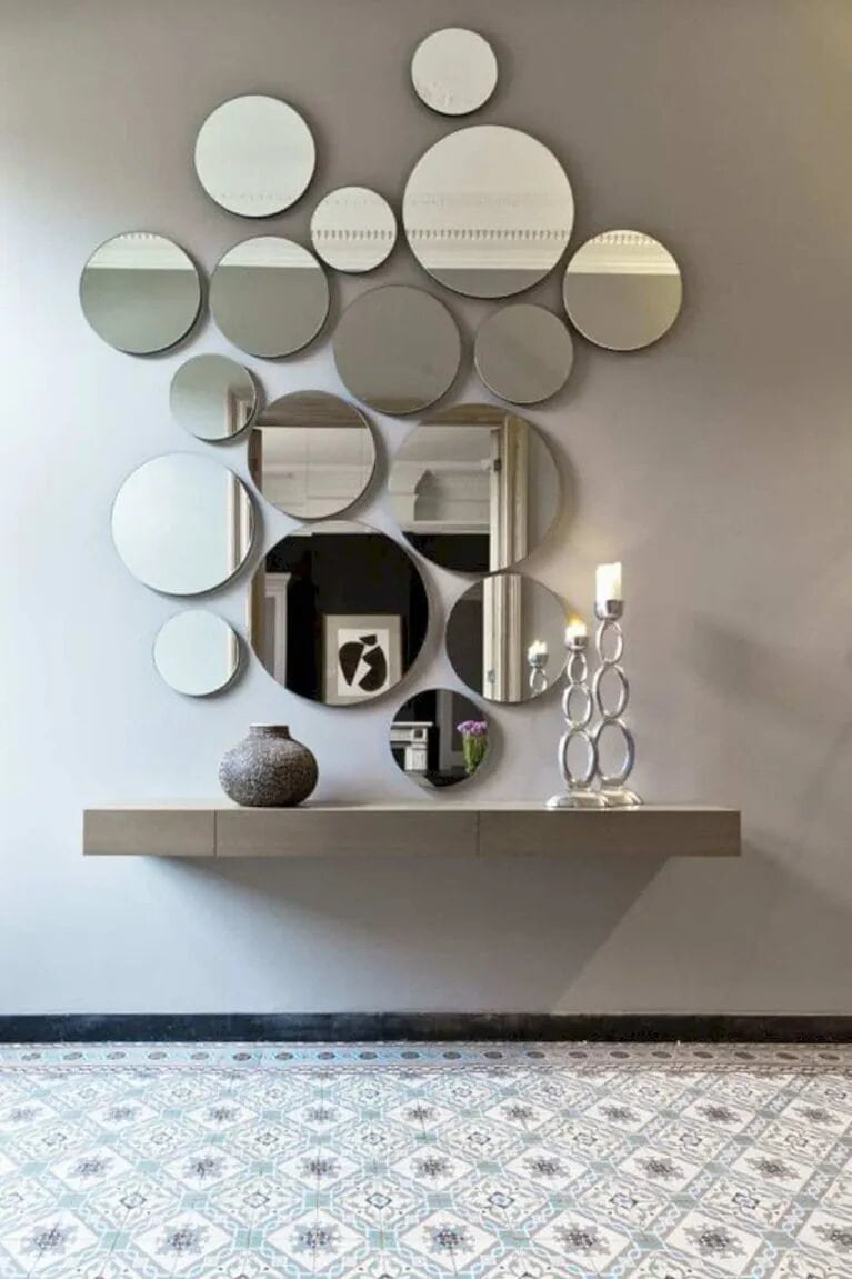Декор из зеркал на стене