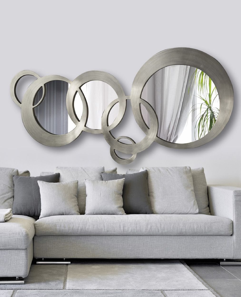 Зеркало над диваном в гостиной