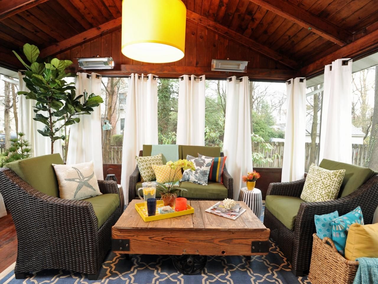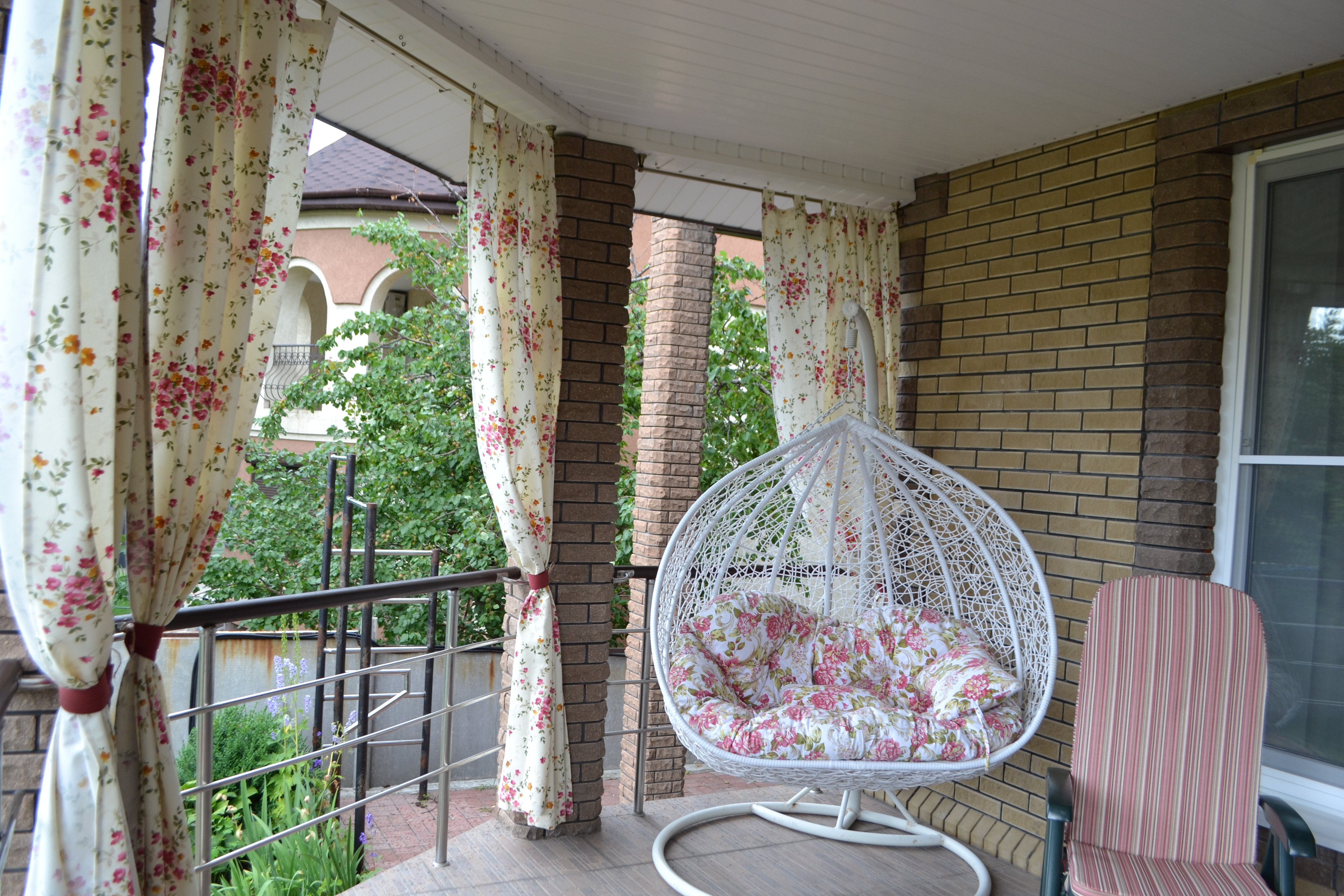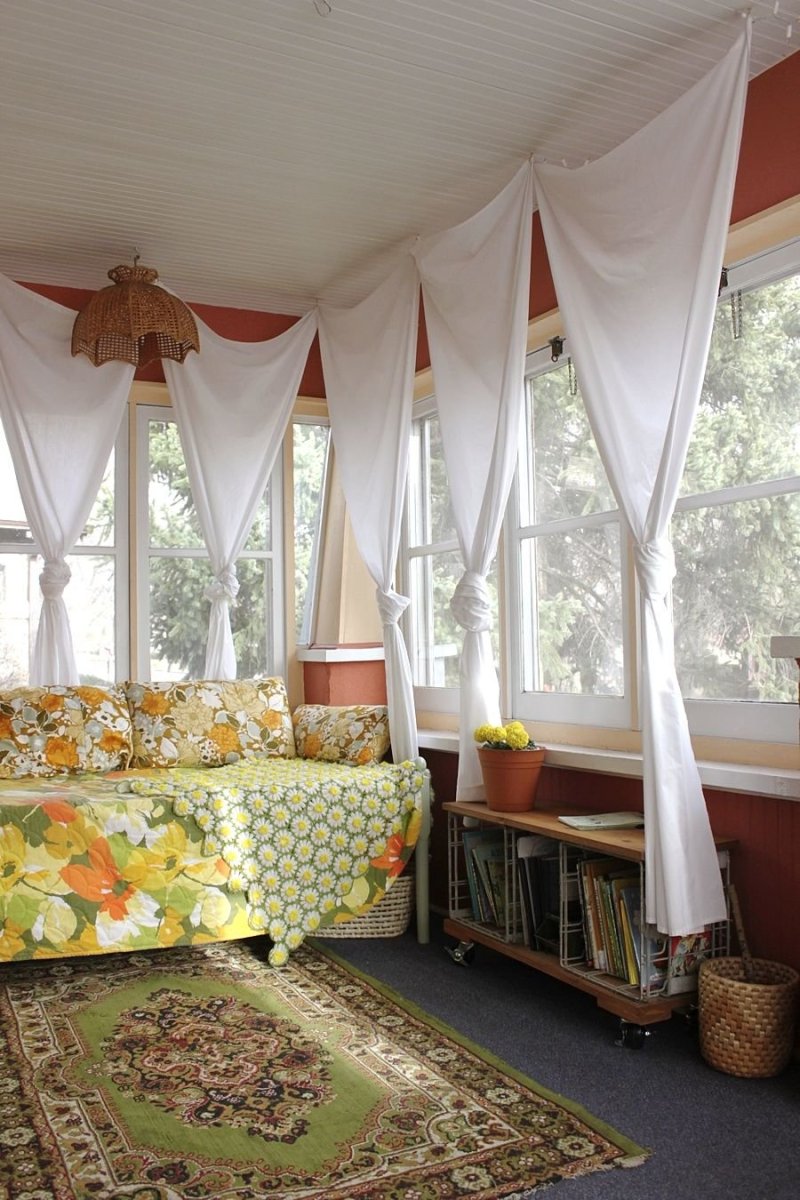 Веранда с яркими шторами
