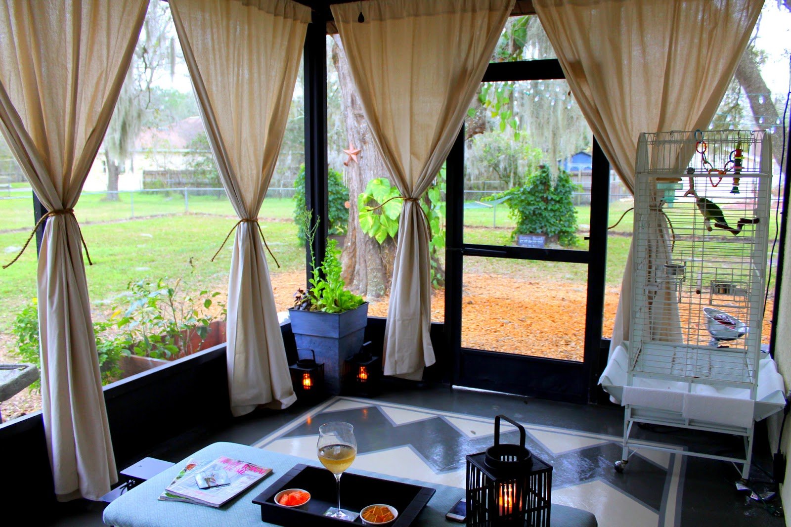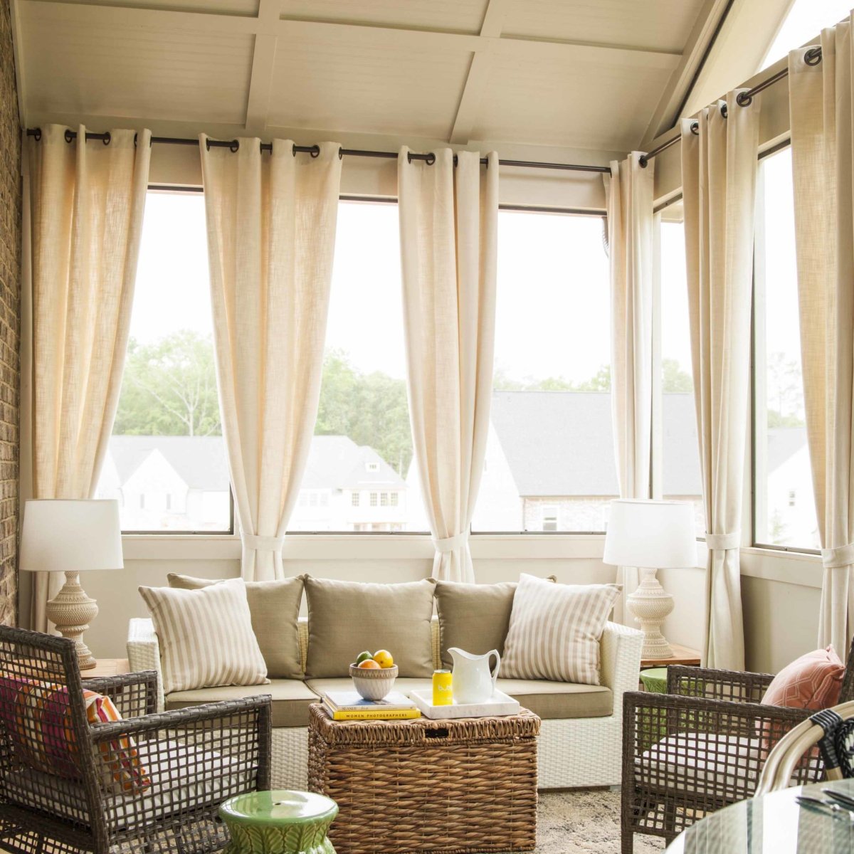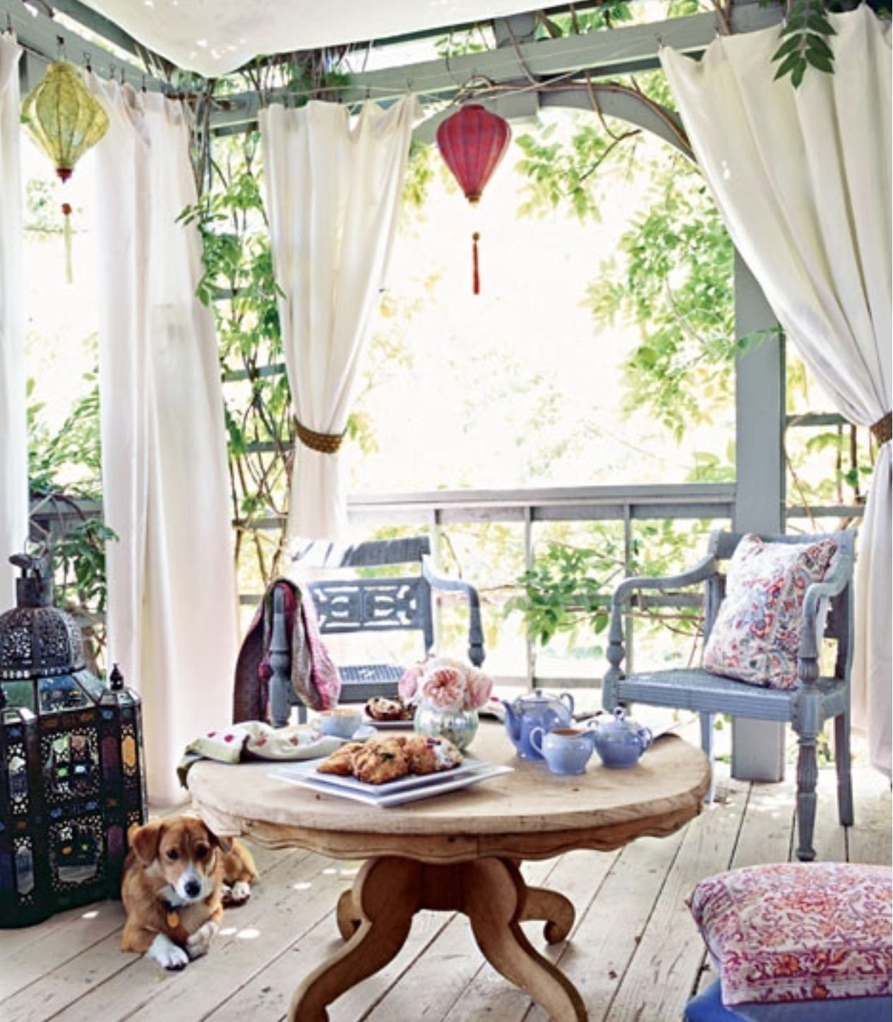 Веранда с яркими шторами