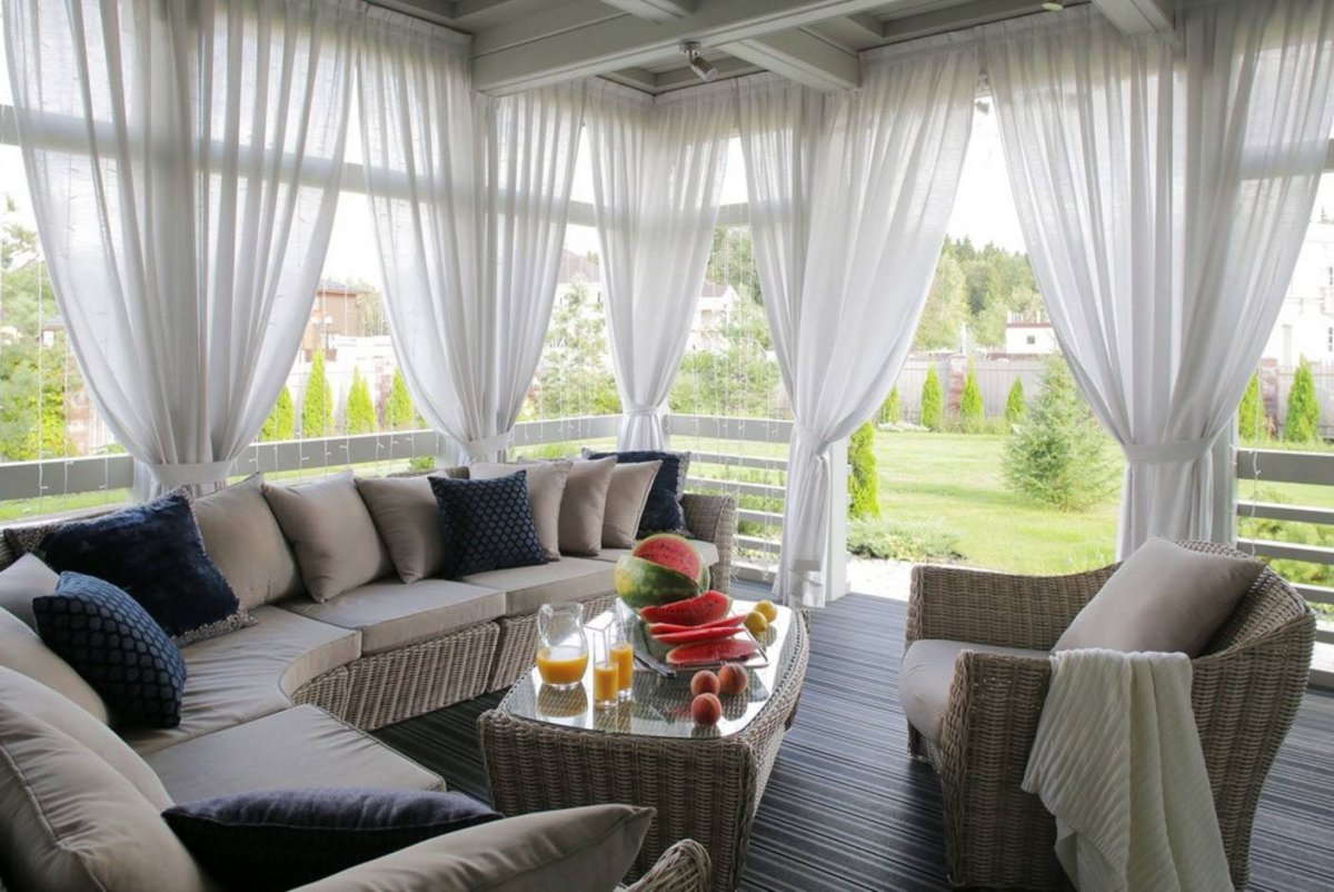 Открытая веранда со шторами