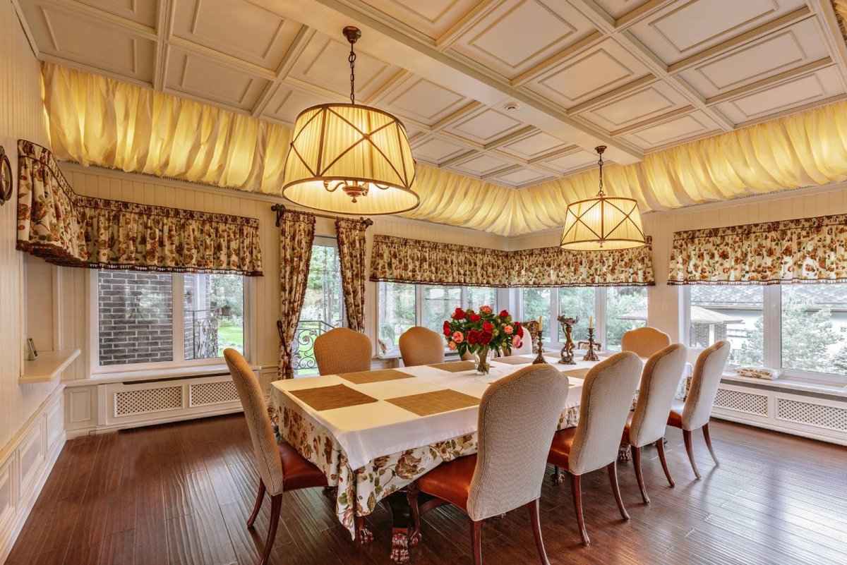 Занавески на кухню с большими окнами