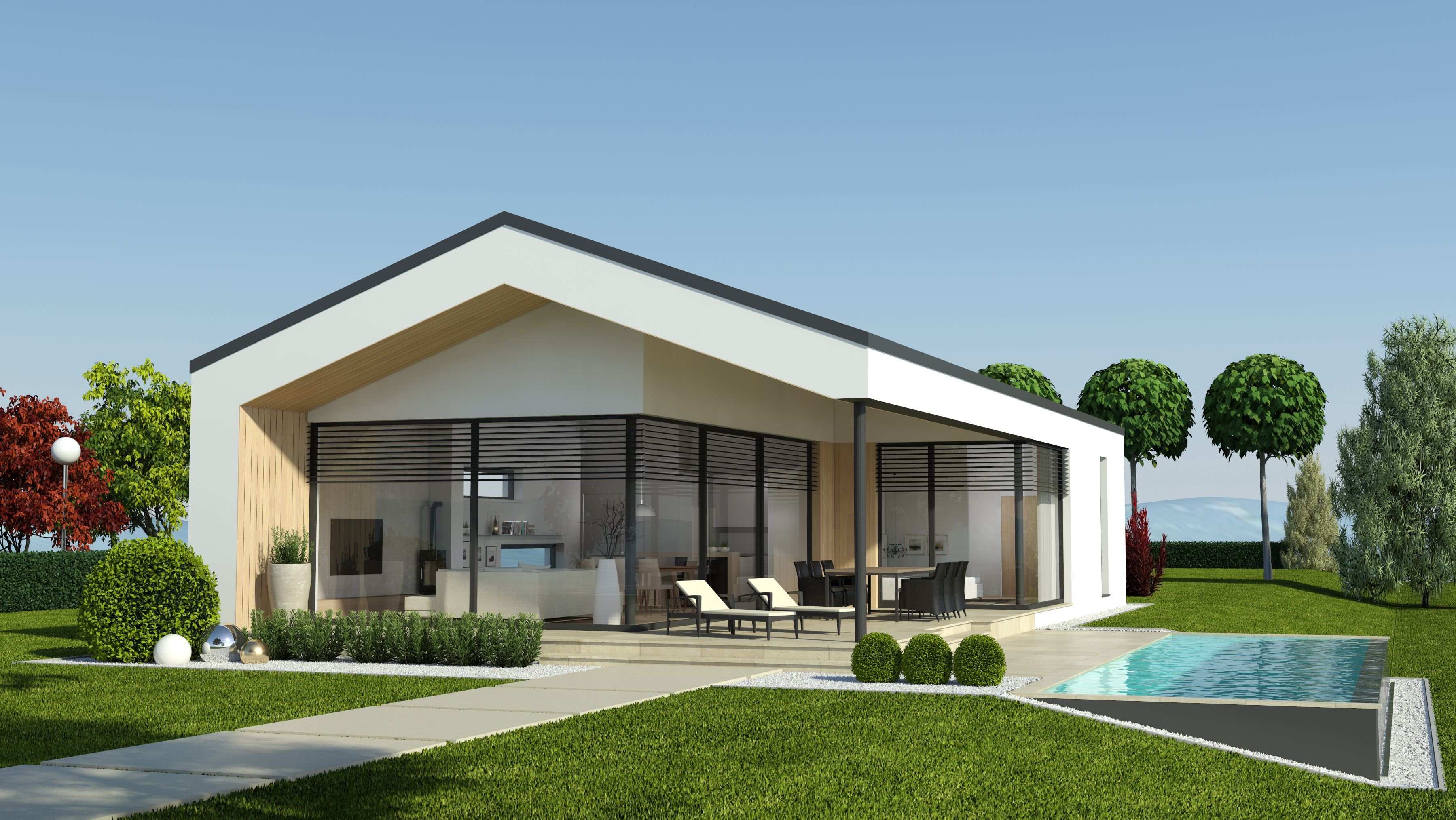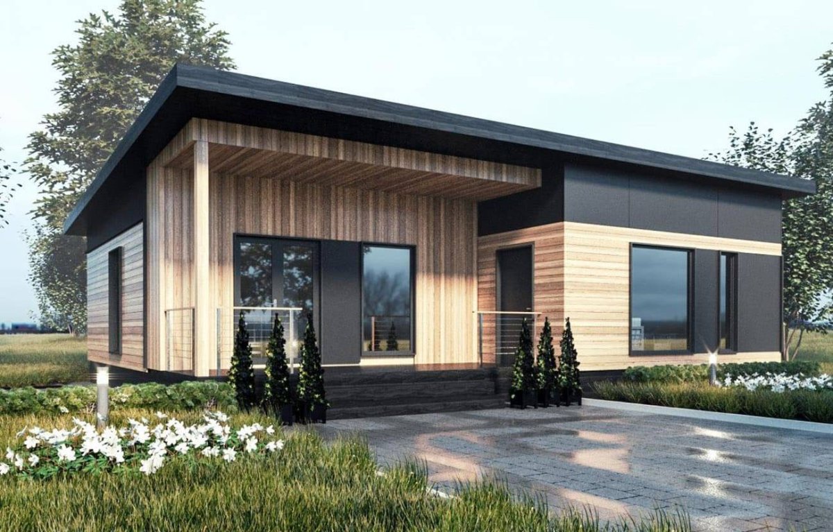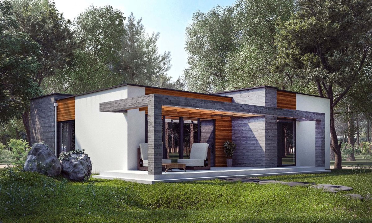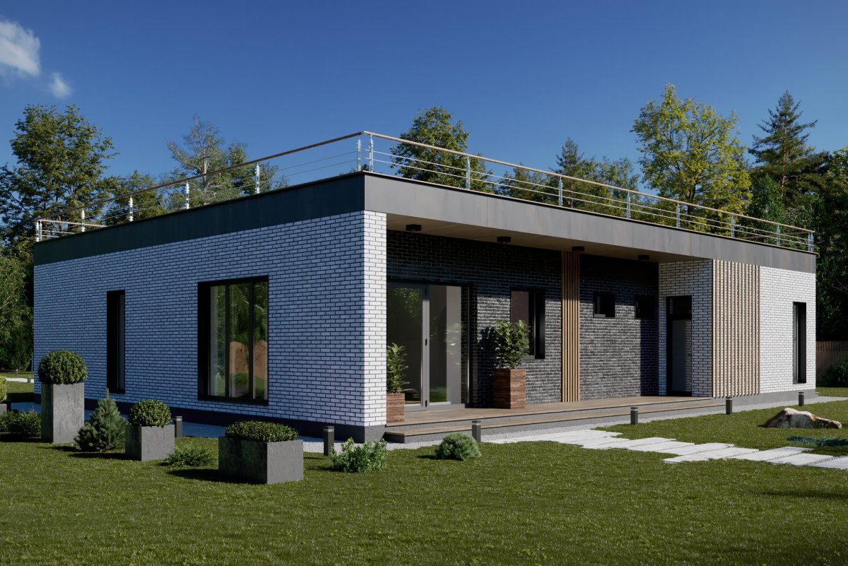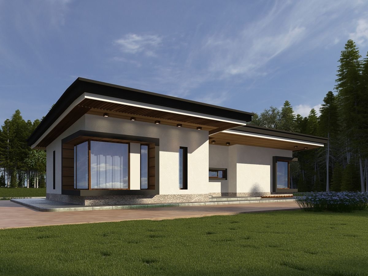 Дом из газобетона 85 кв м одноэтажный с односкатной крышей
