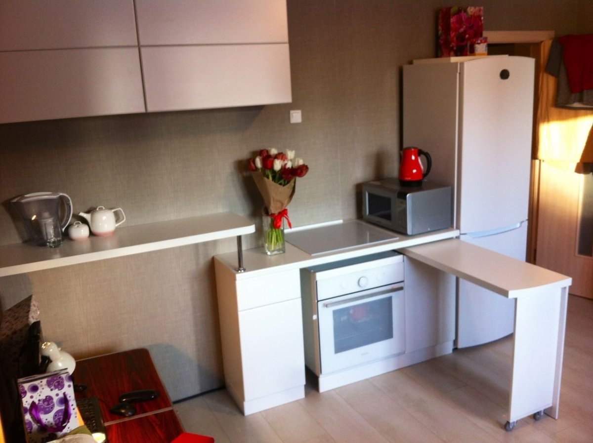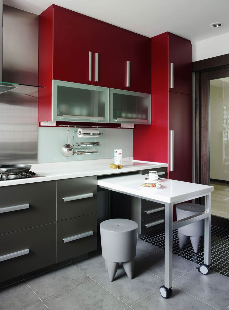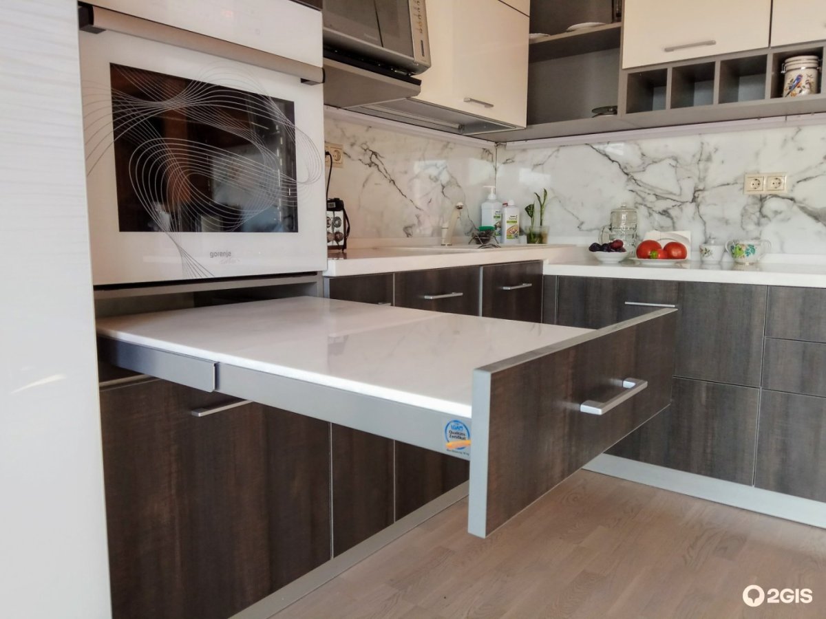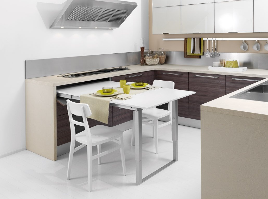 Кухонный гарнитур с выдвижным столом для маленькой кухни