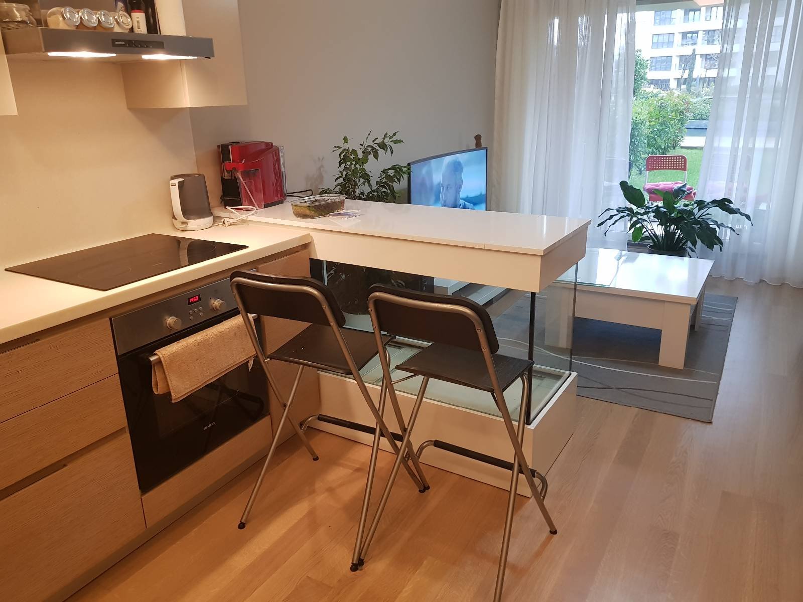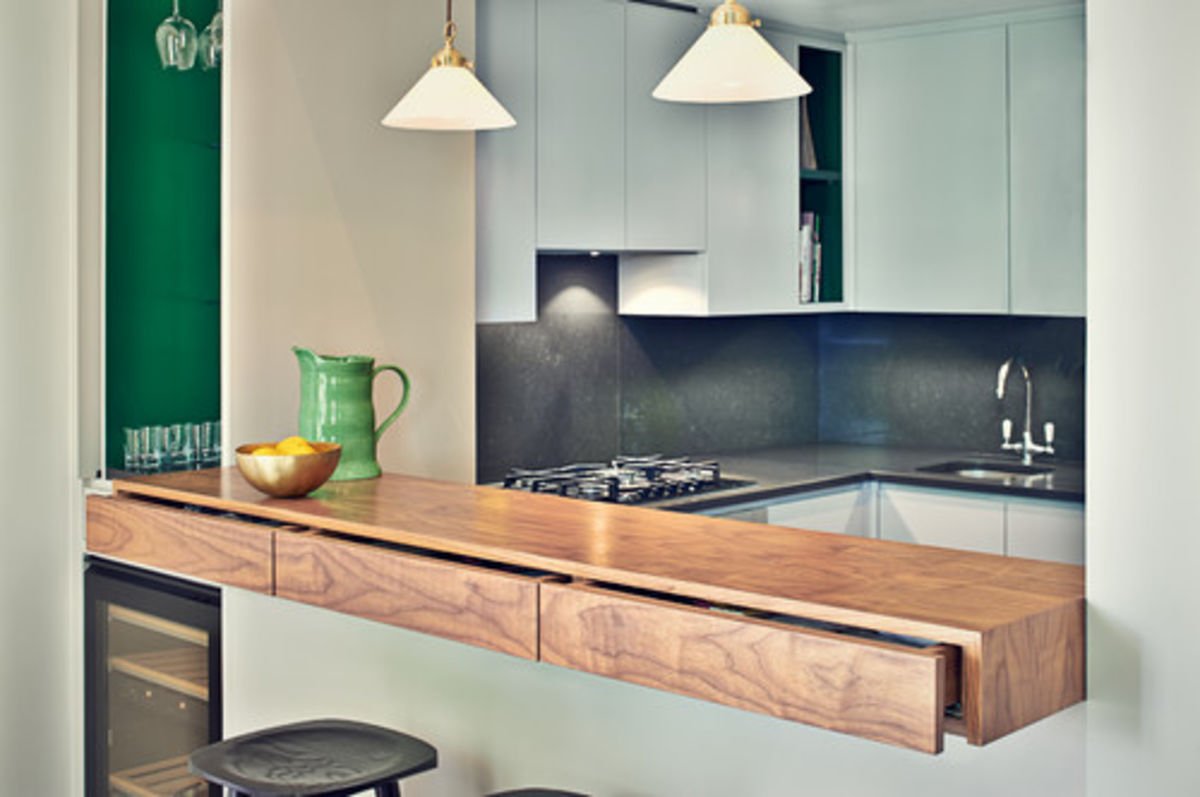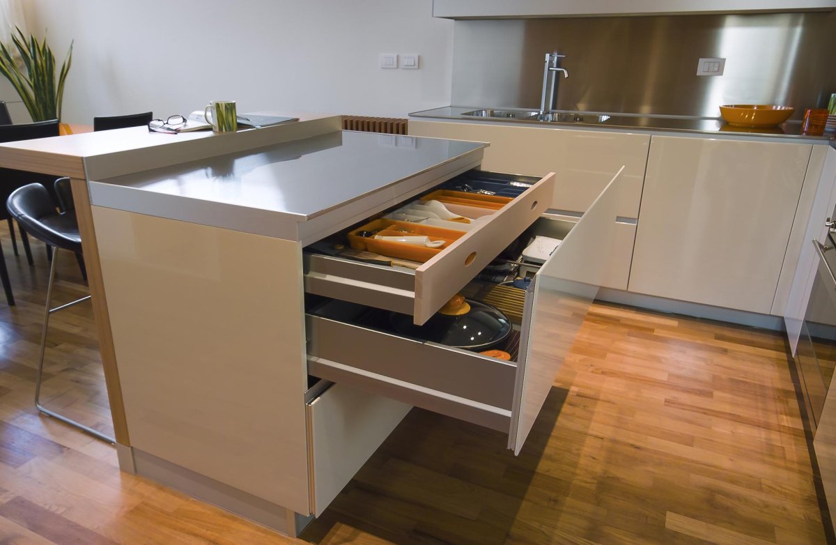 Кухонный гарнитур с выдвижным столом для маленькой кухни