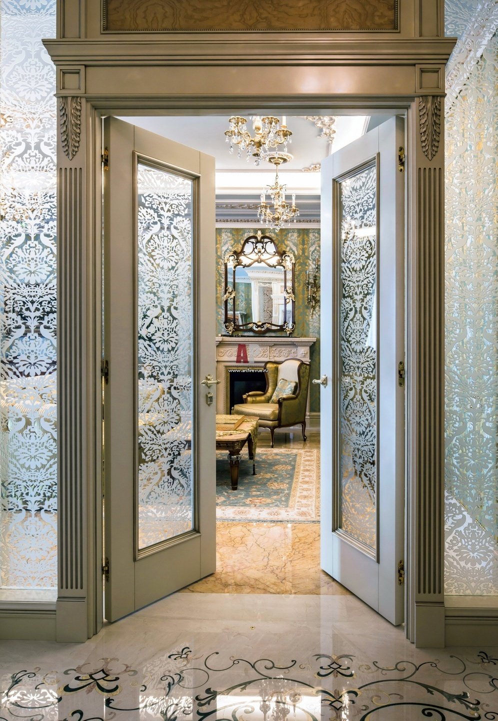 Шикарные раздвижные двери в гостиную классика