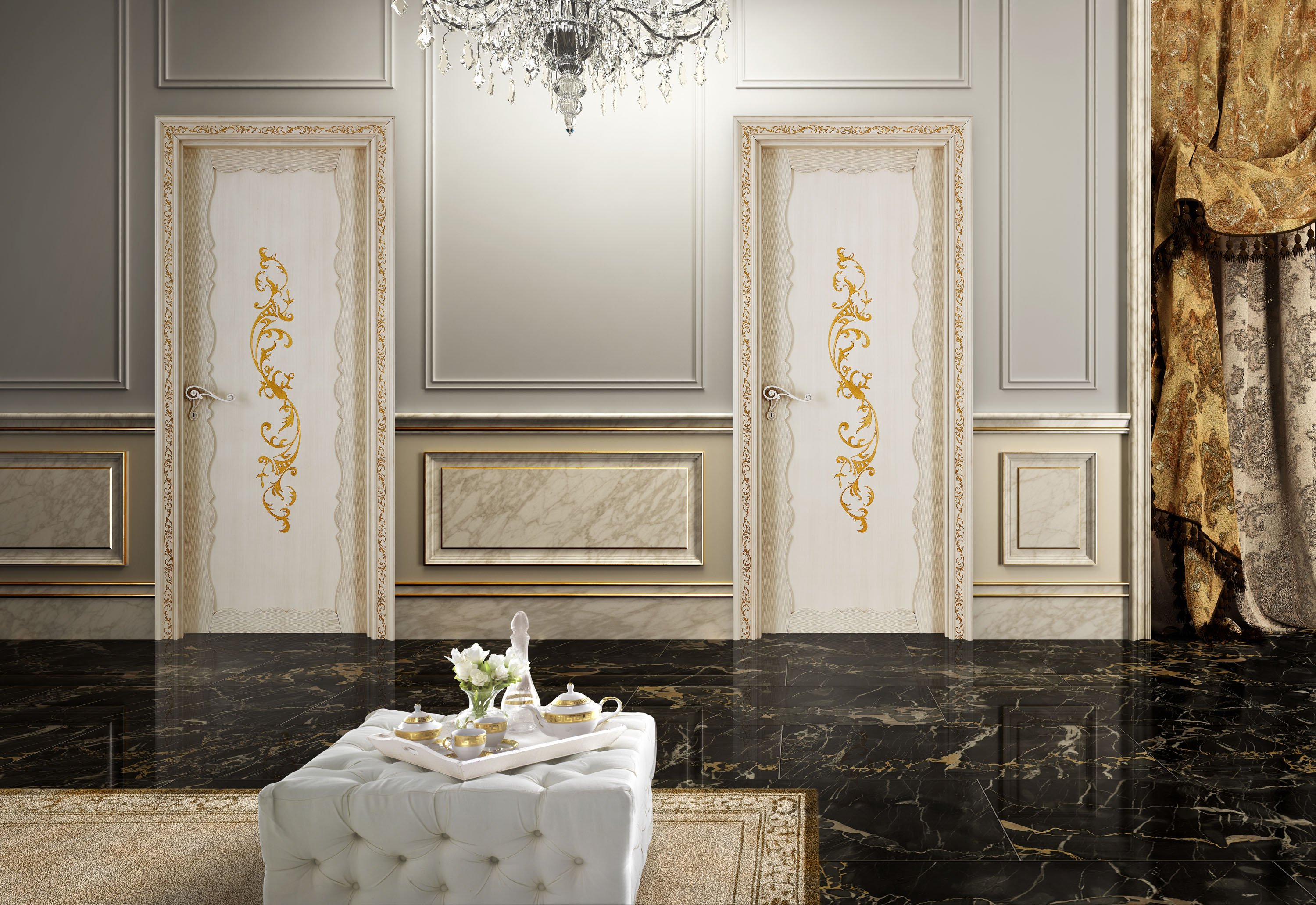 Двери с золотом в интерьере