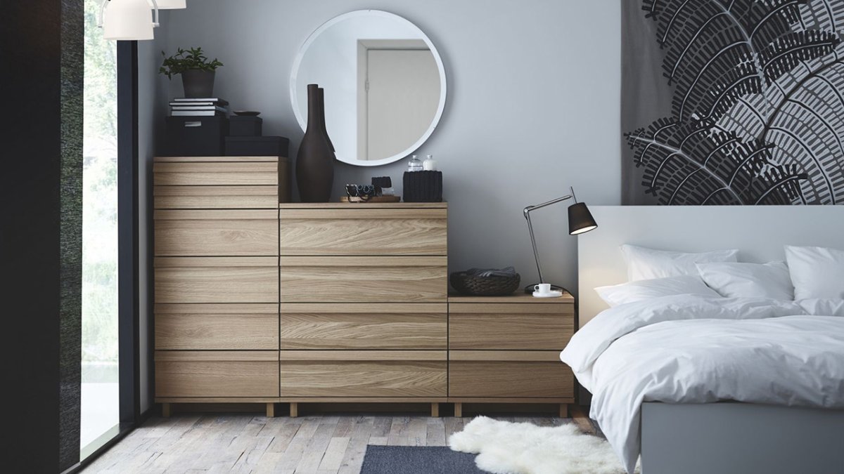 ХЕМНЭС комод с 3 ящиками, белая морилка, 108x96 см