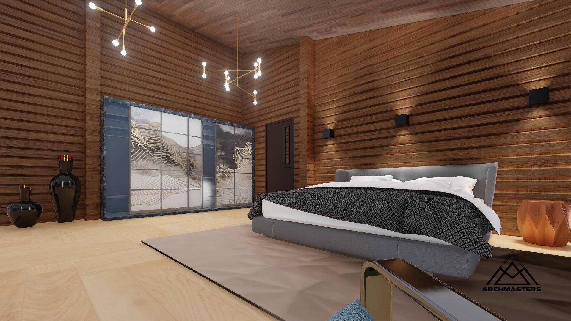 Отделка планкеном спальня