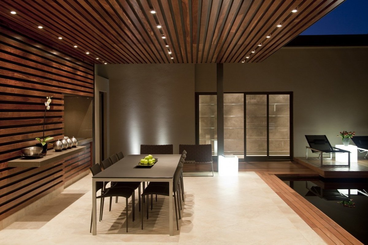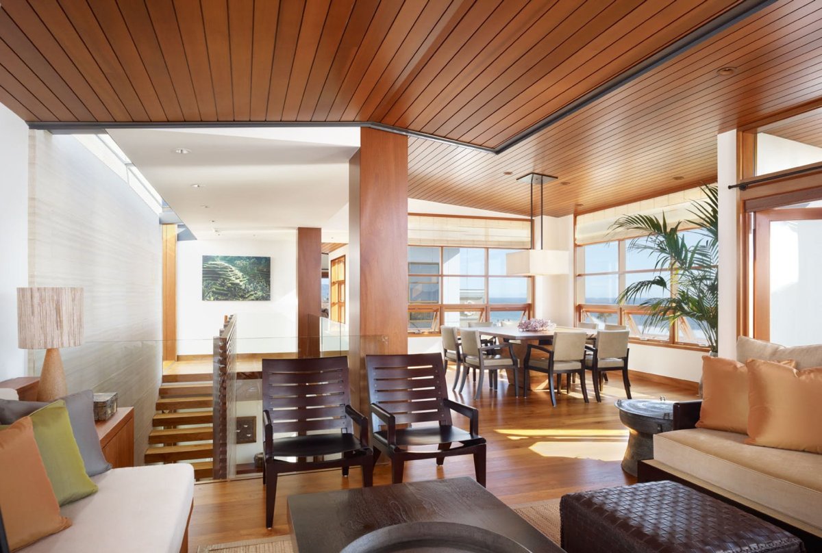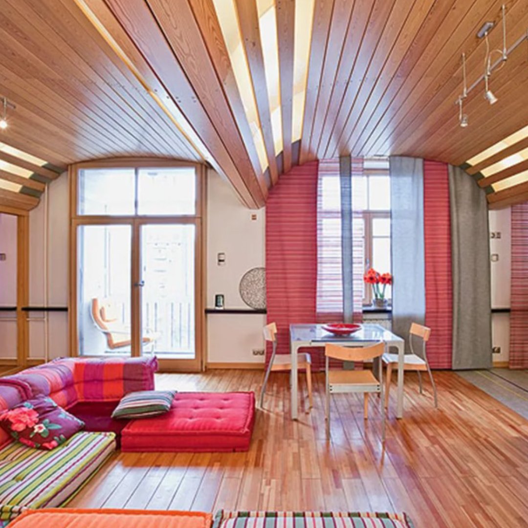 Планкен на потолке в интерьере