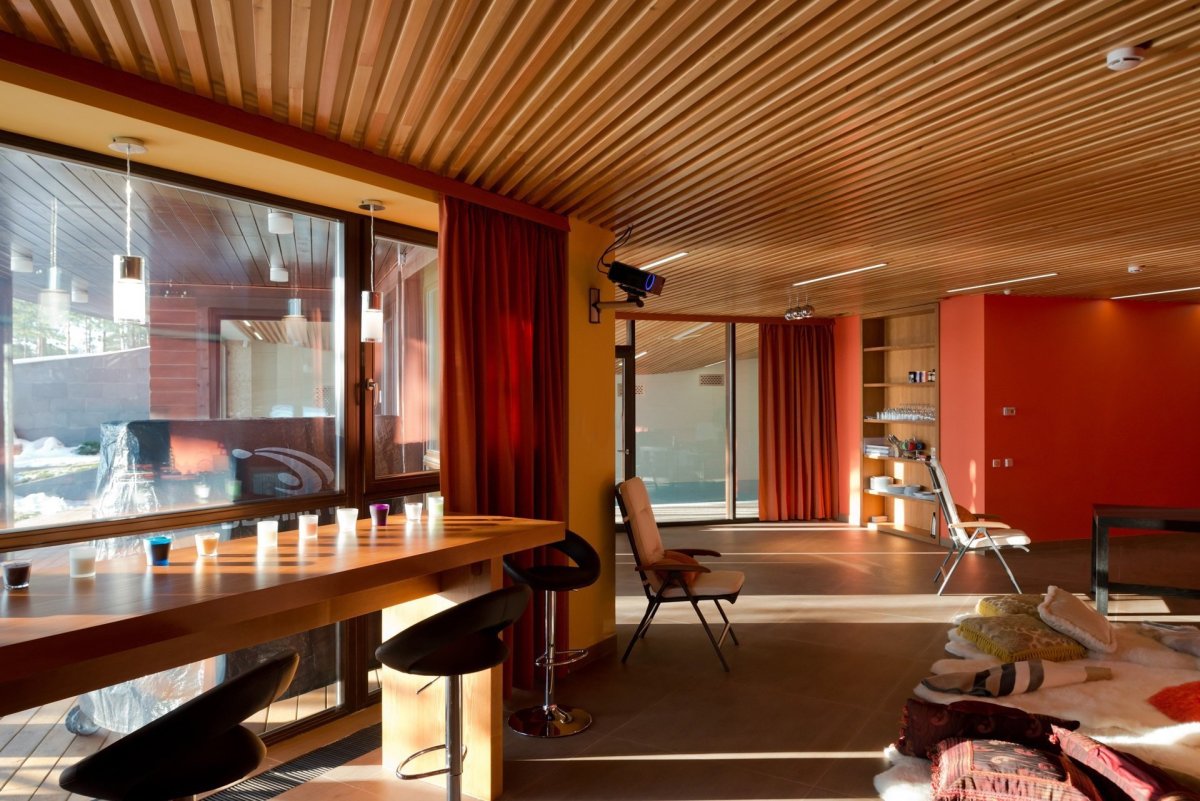 Потолок из лиственницы в интерьере