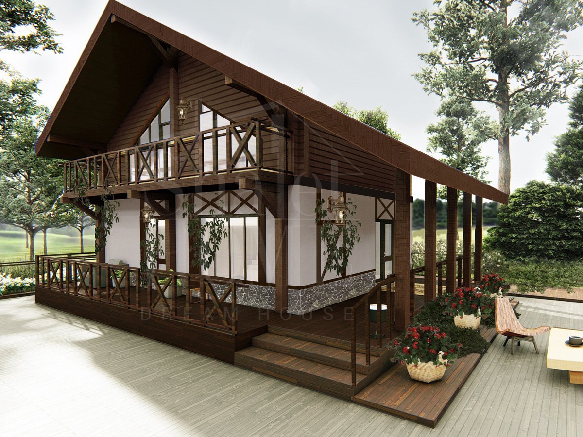 Сруб в стиле Шале с верандой