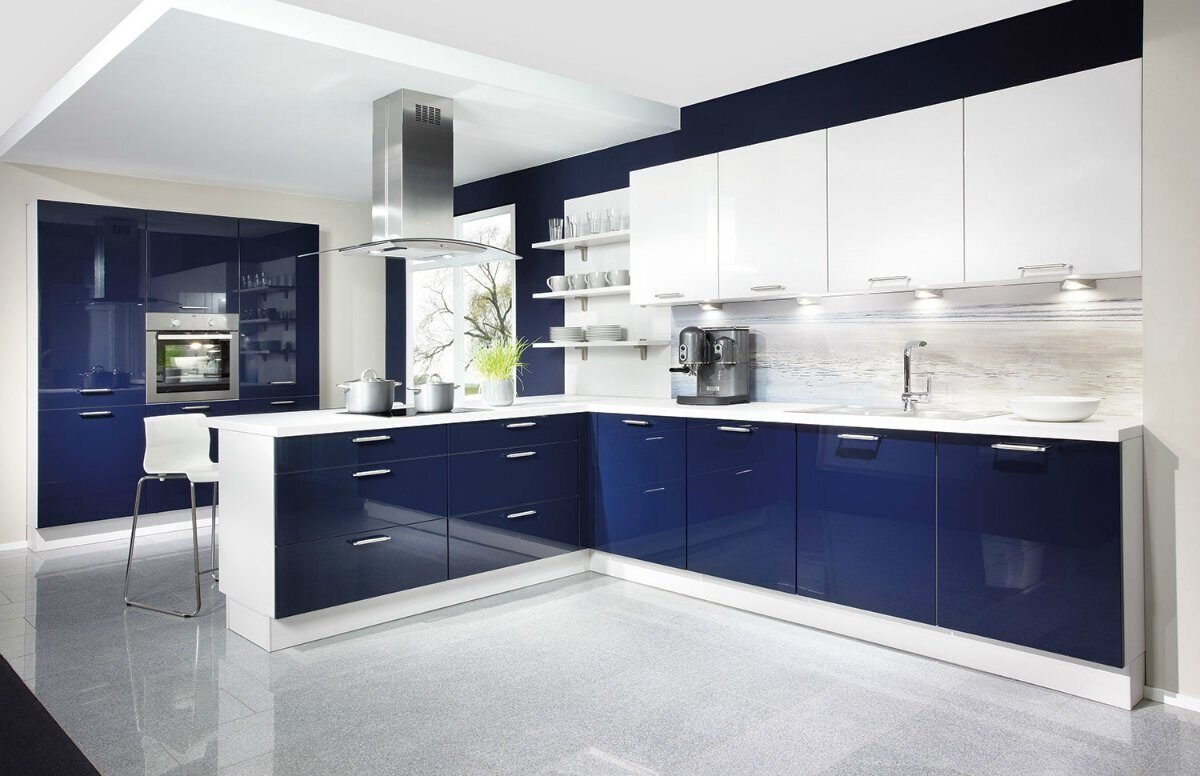 Синяя глянцевая кухня
