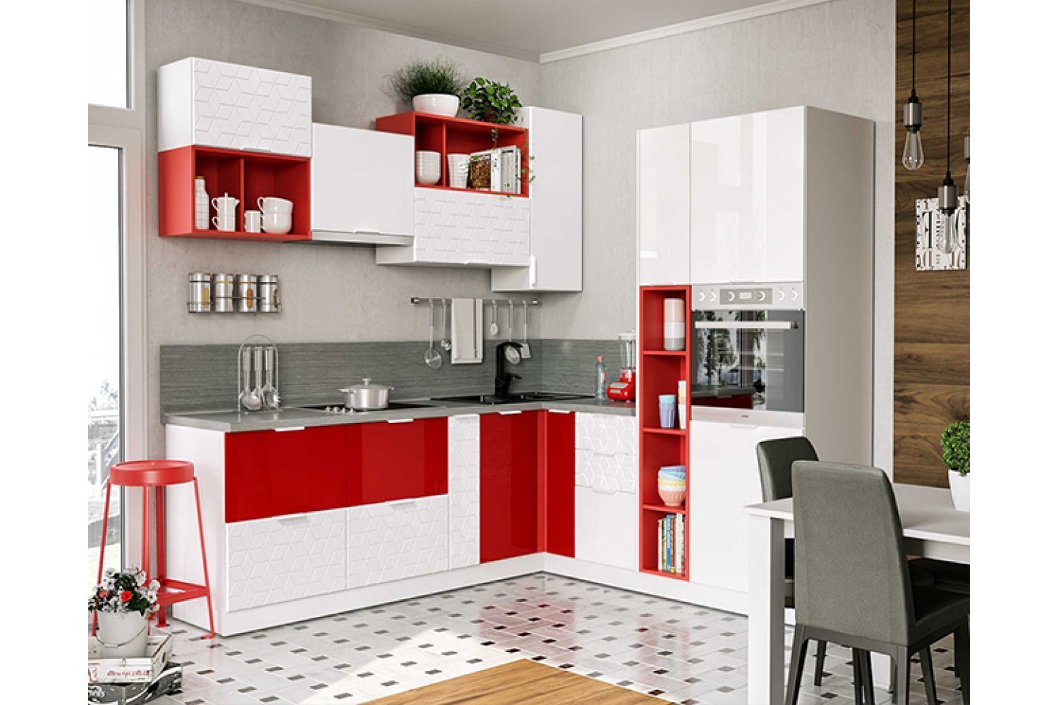 Кухня Валерия страйп красный и белый