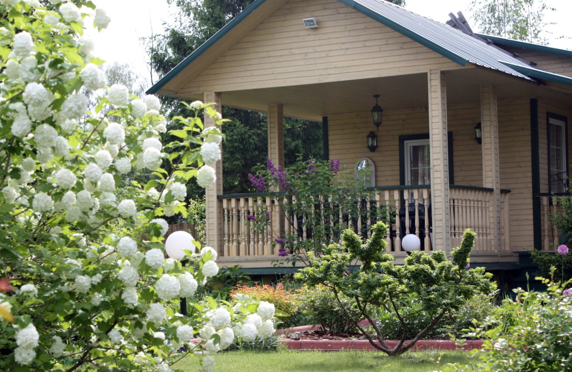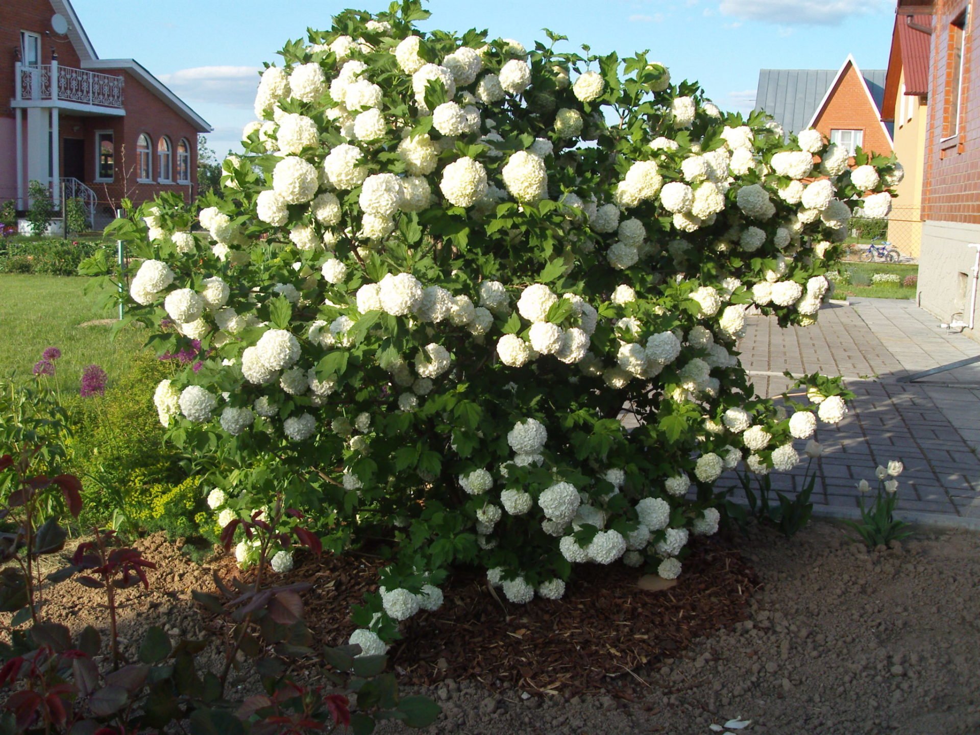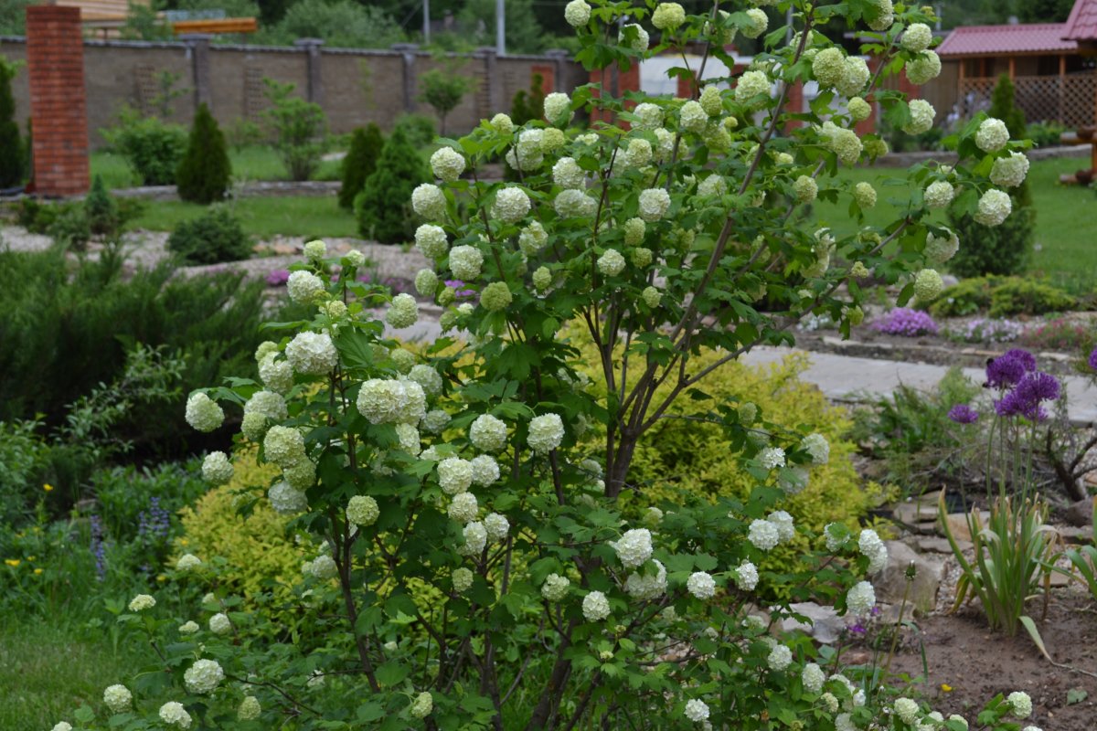 Цветник с калиной бульденеж