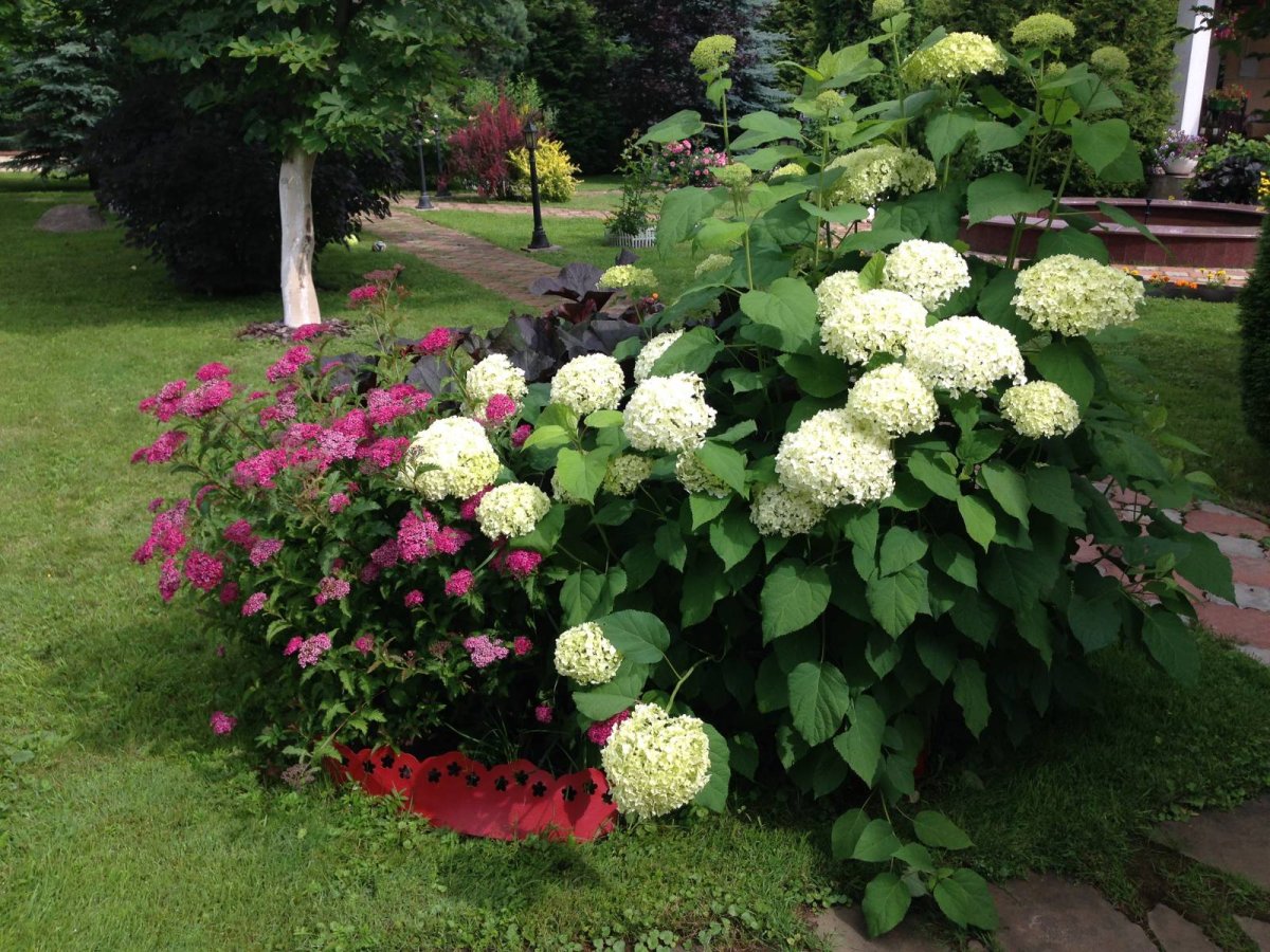 Гортензия Анабель и спирея
