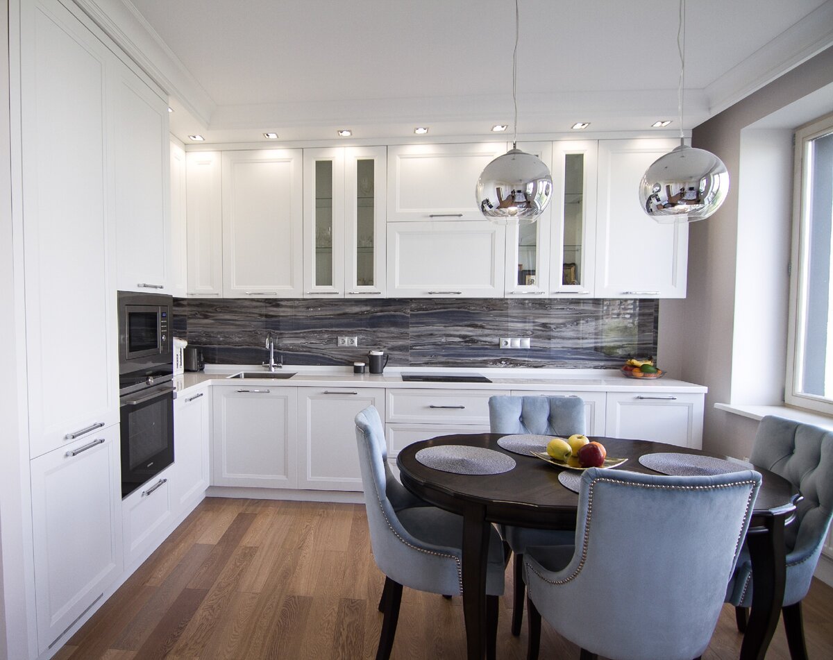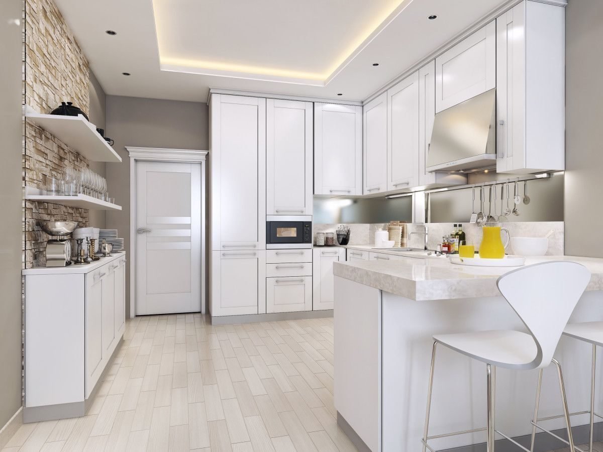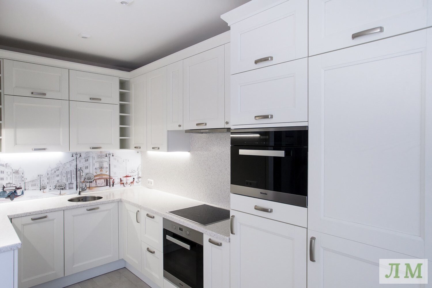 Кухня с белыми фасадами