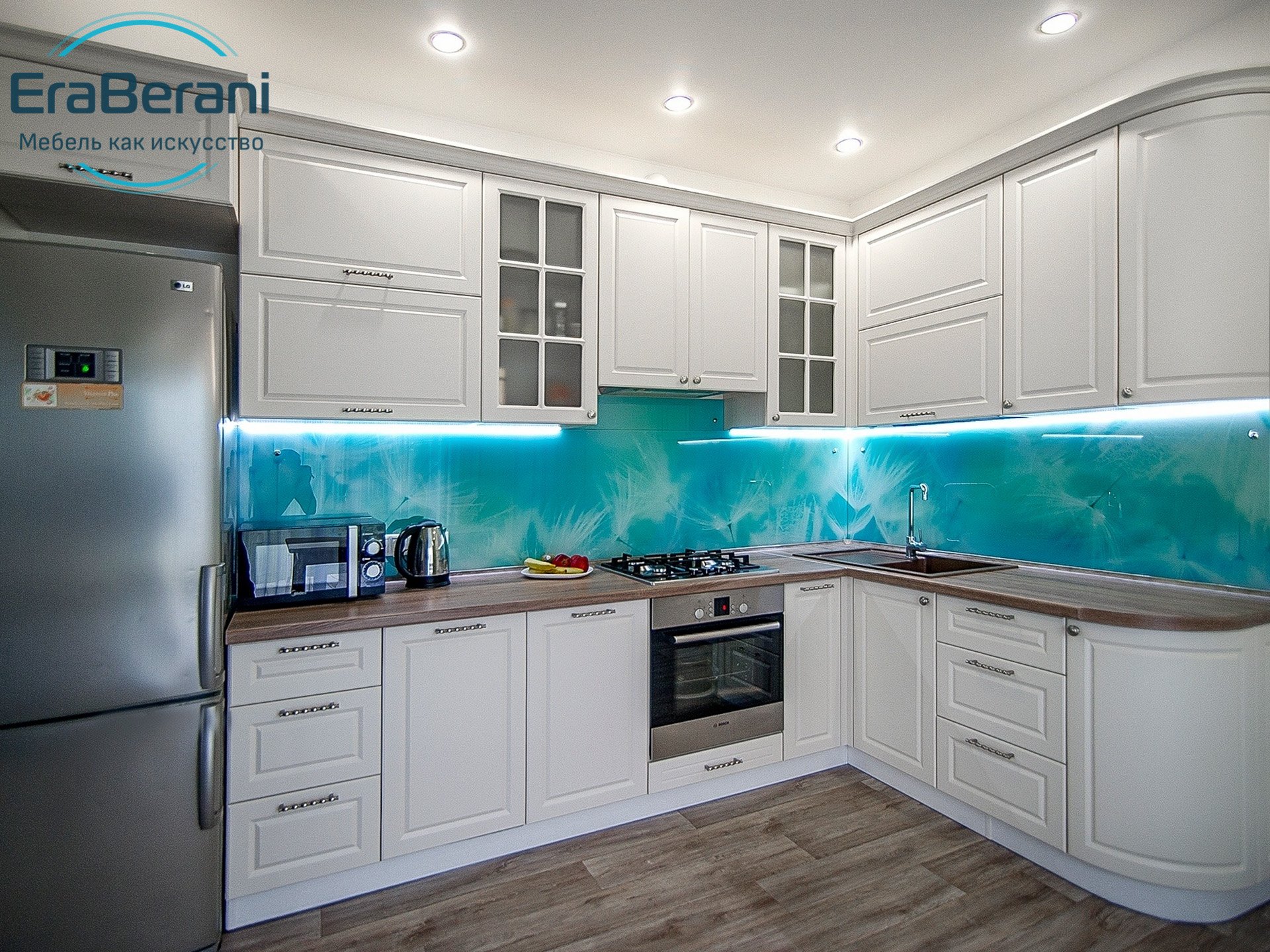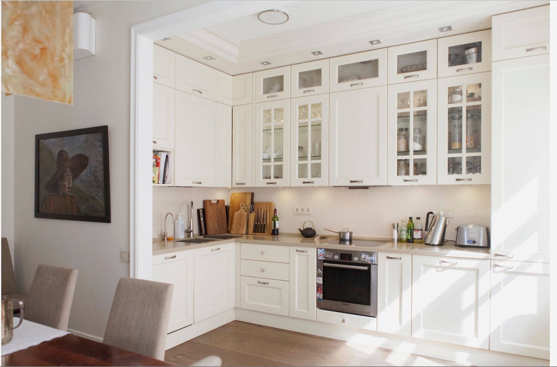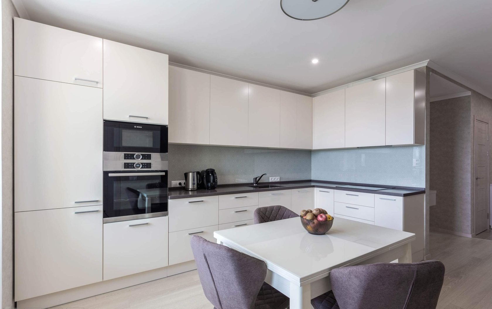 Кухня с белыми фасадами
