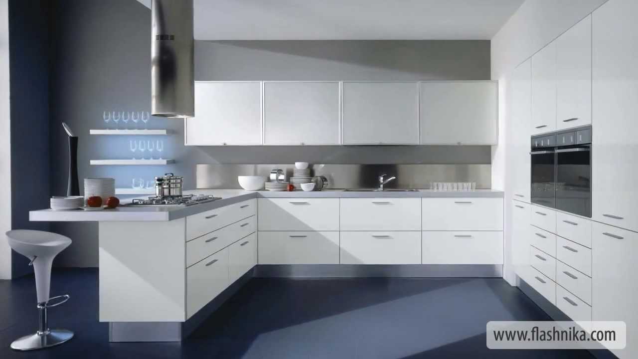Кухня белая серая синяя хайтек