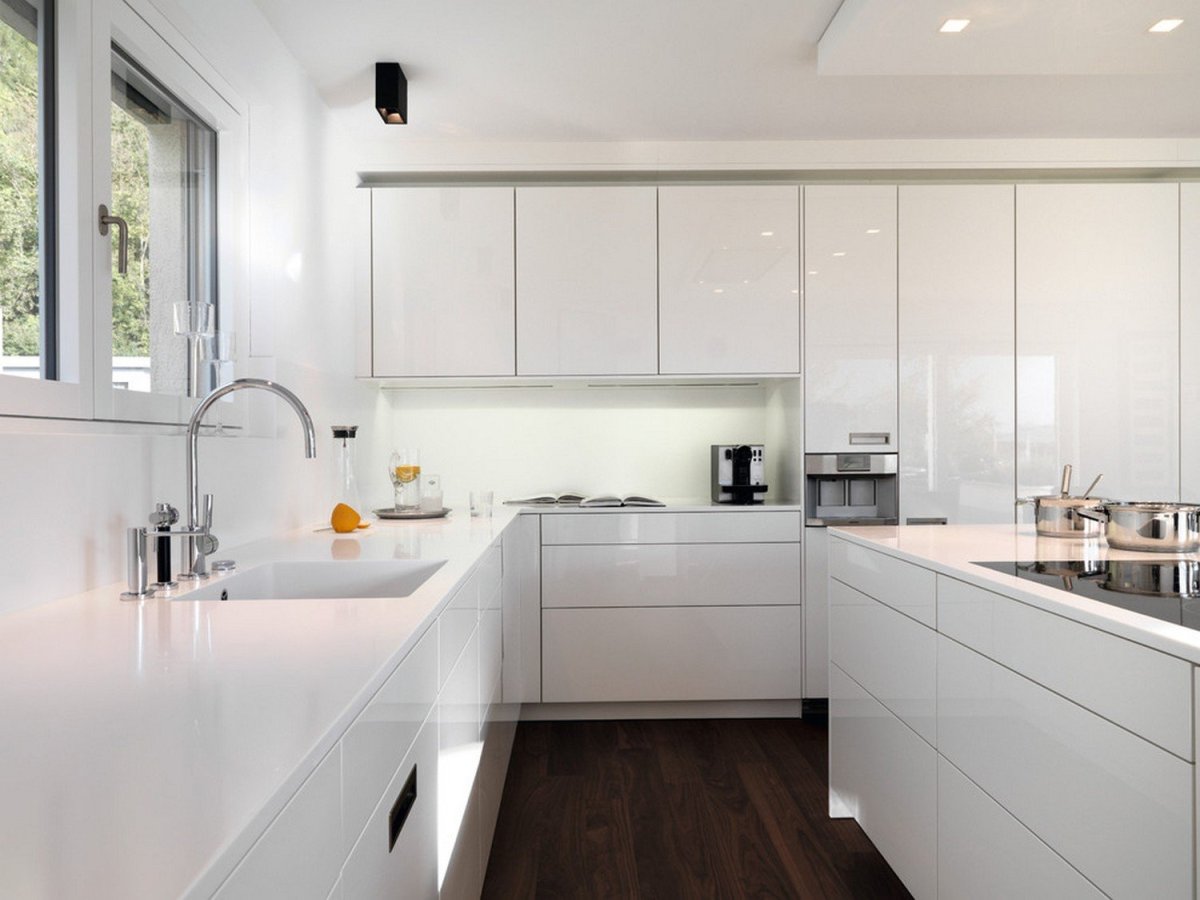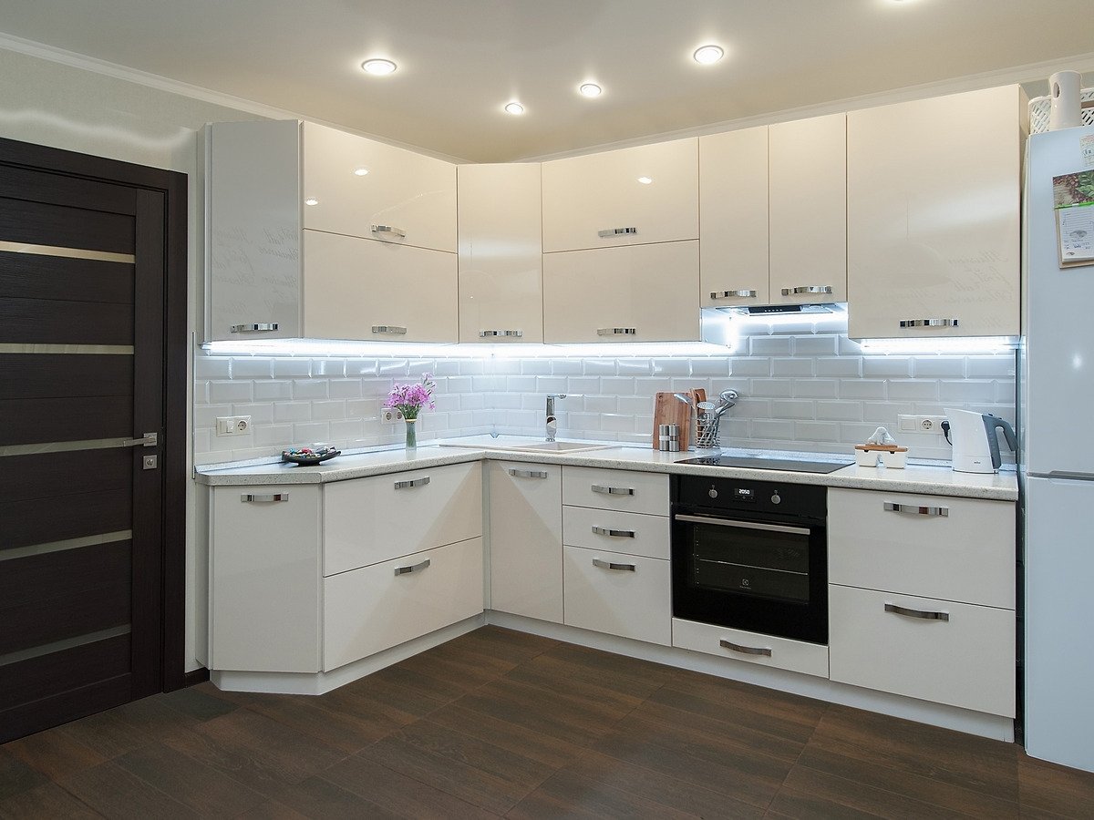 Кухни белые глянцевые угловые
