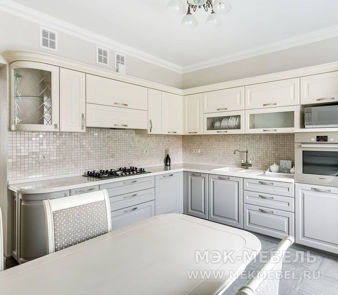 Кухня угловая белая классика