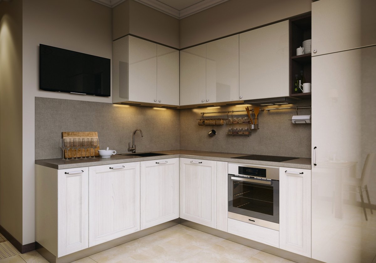 Кухня светлая угловая современная