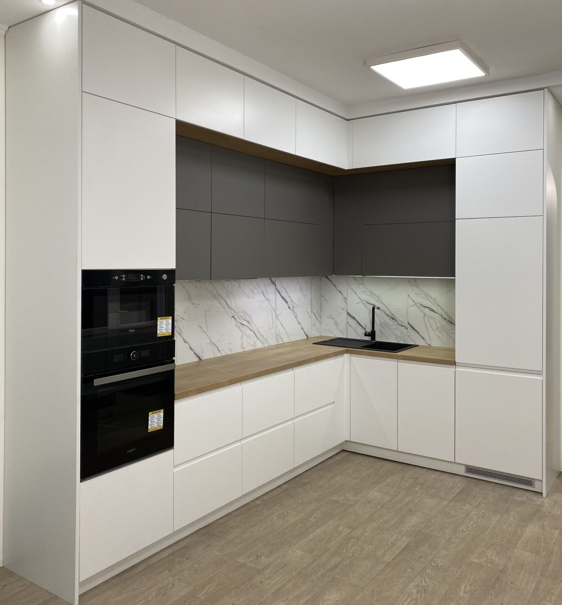 Кухня белая с деревом угловая