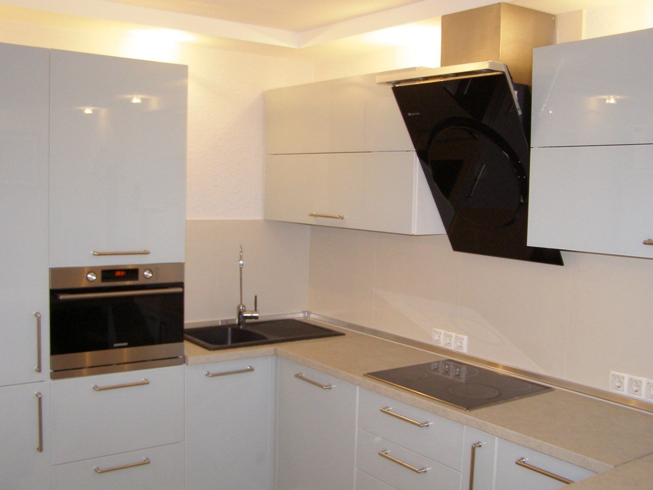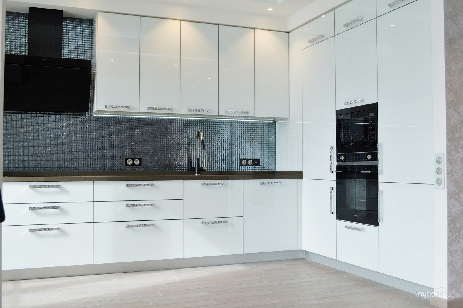 Белая глянцевая кухня ручки