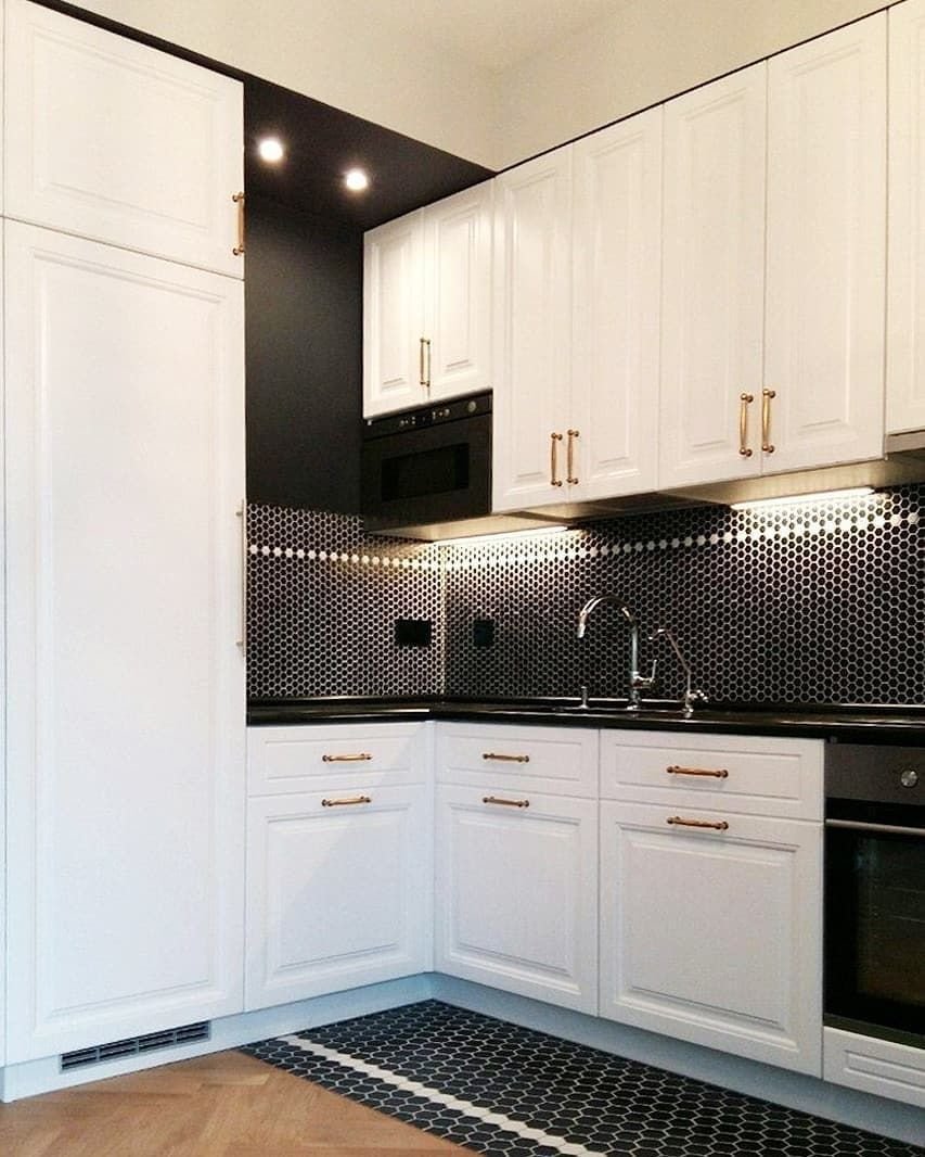 Белая кухня икеа с золотыми ручками