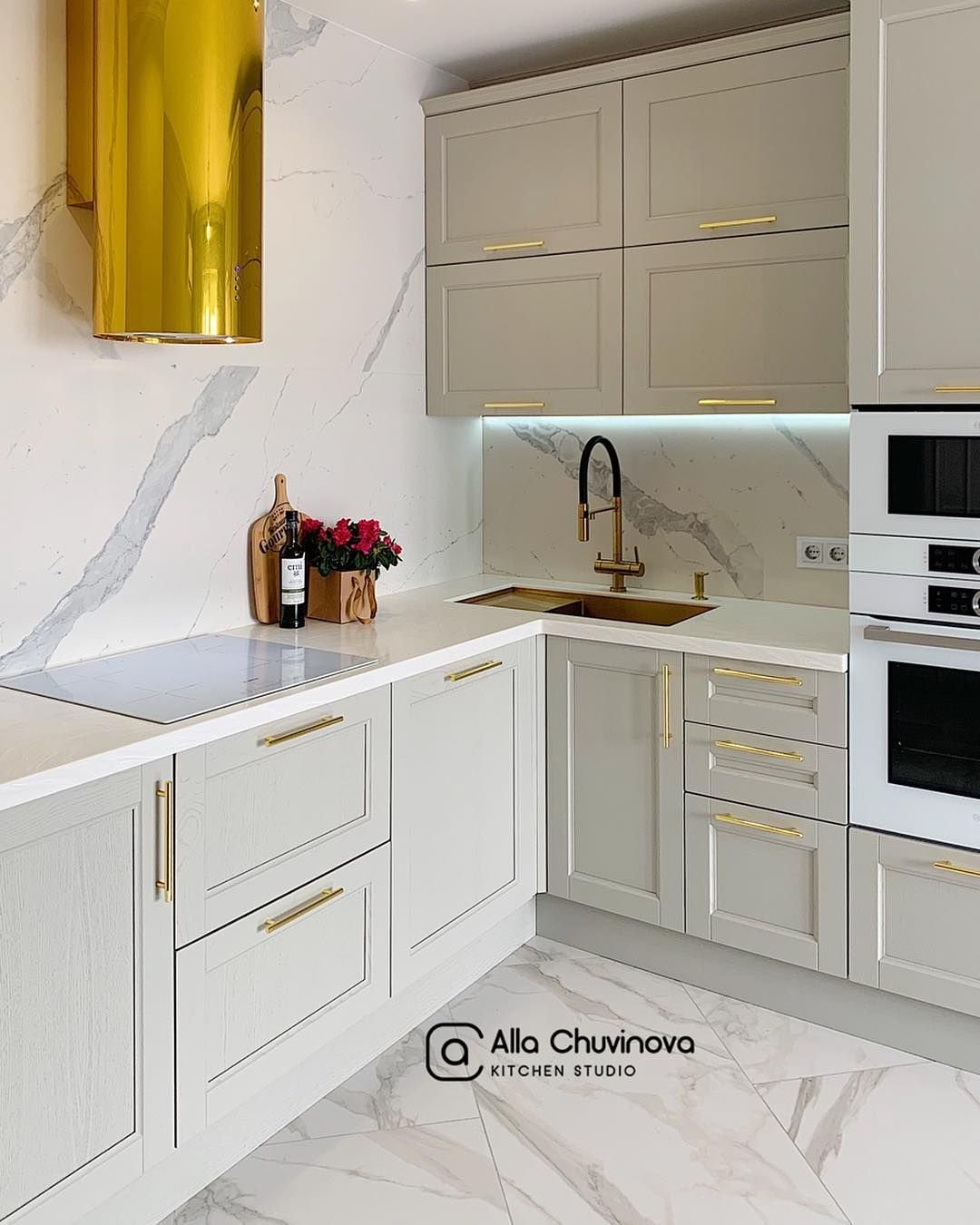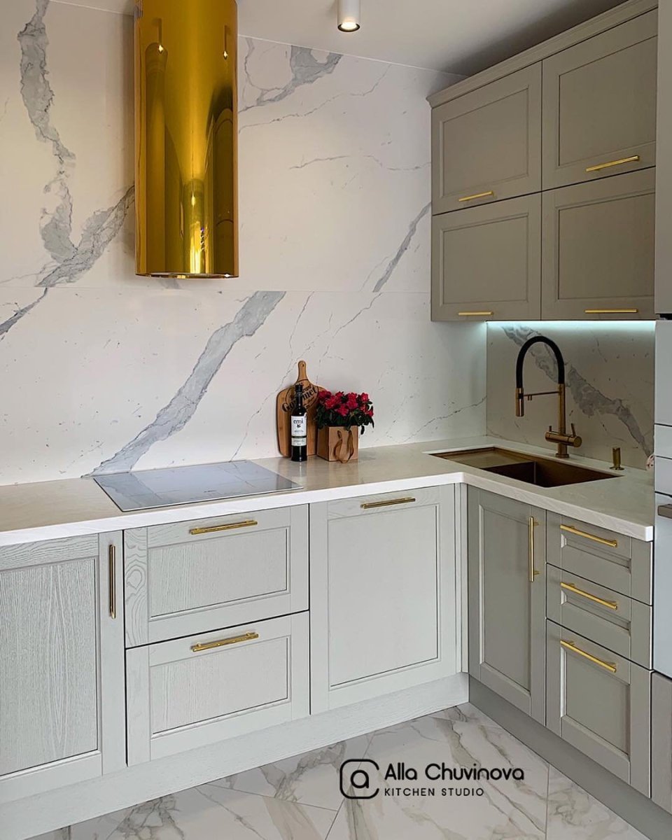 Кухня с золотыми ручками