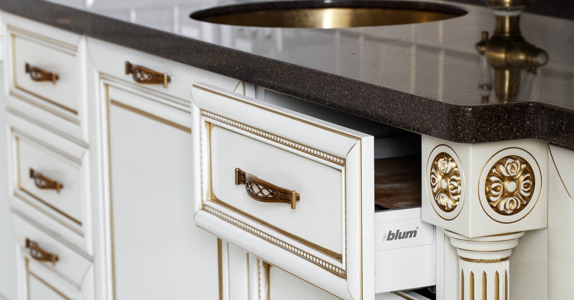 Белая мебель с золотыми ручками
