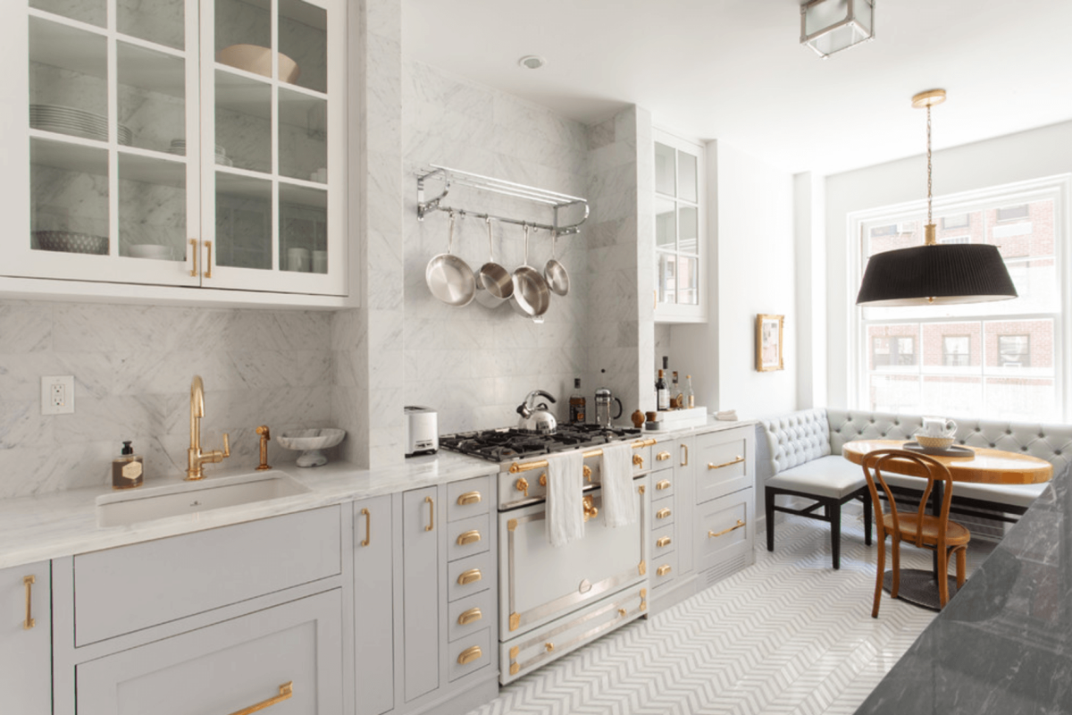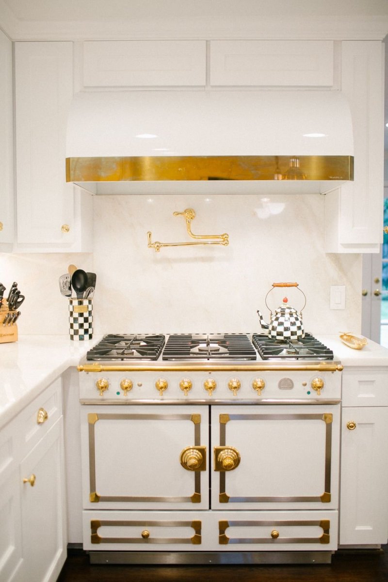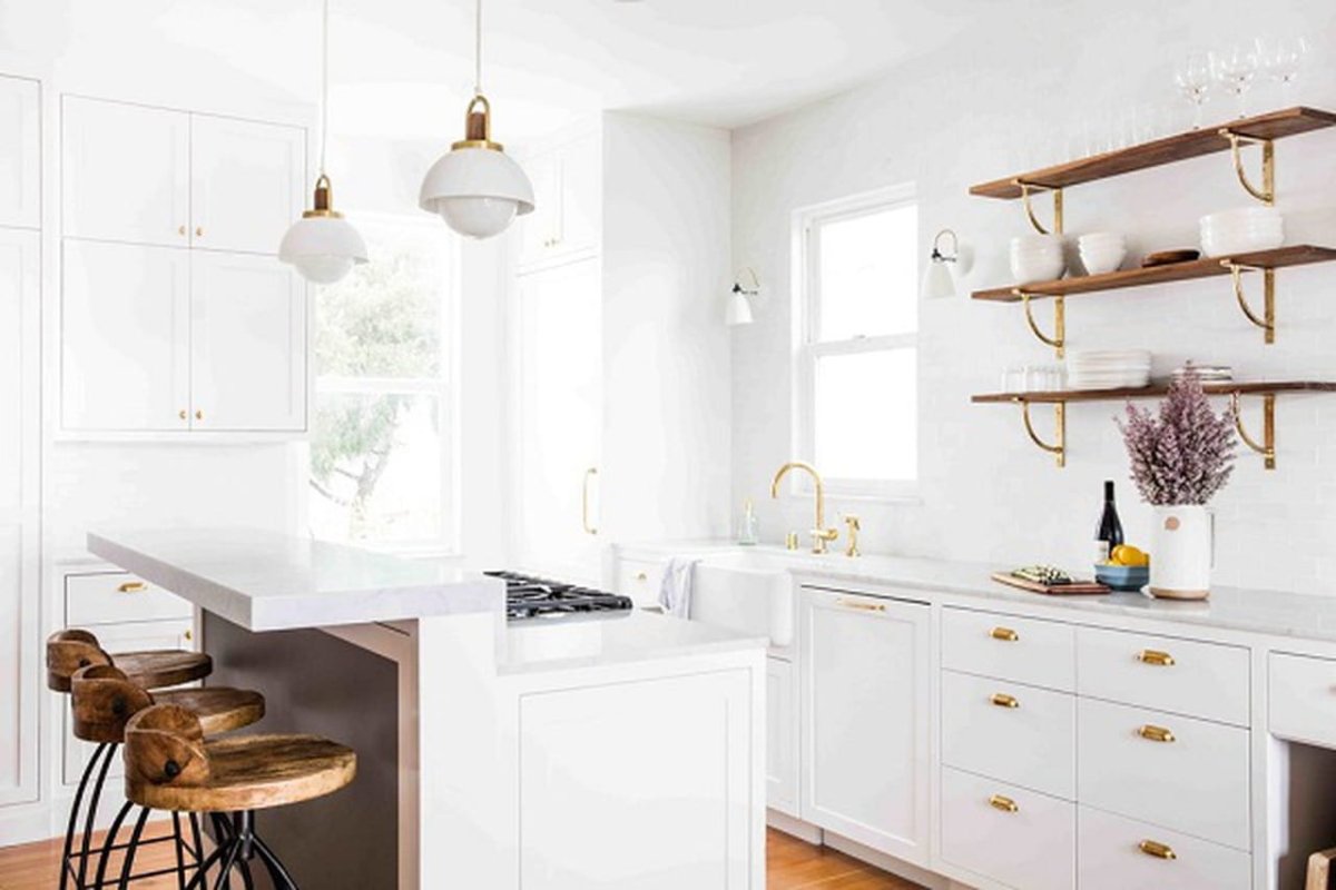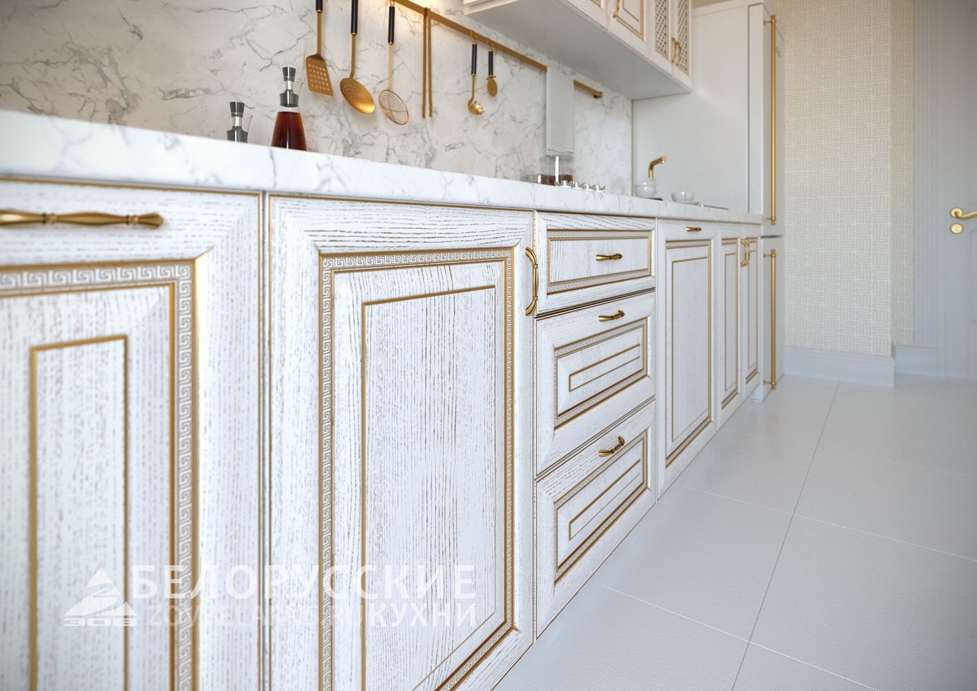 Белая кухня с золотой фурнитурой