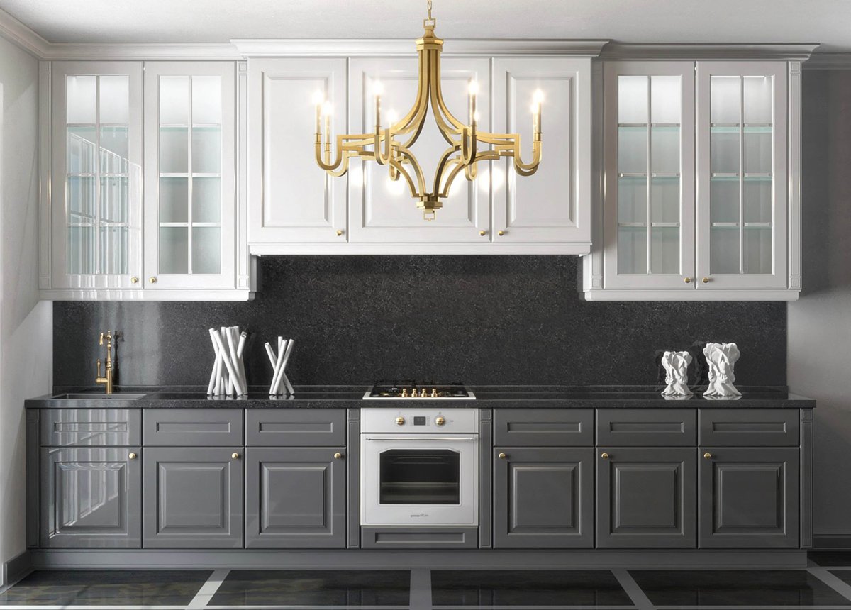 Серая кухня с золотыми ручками