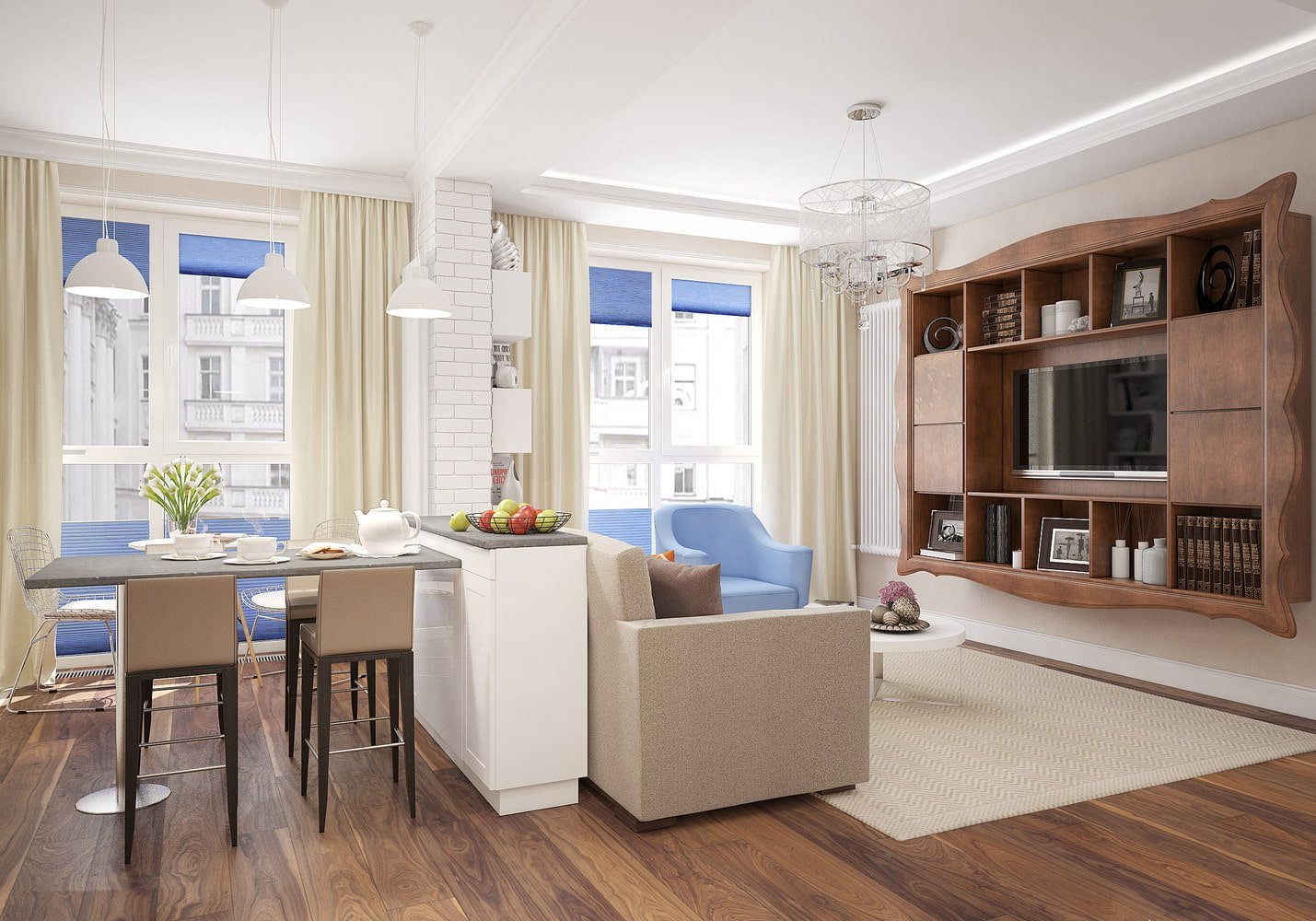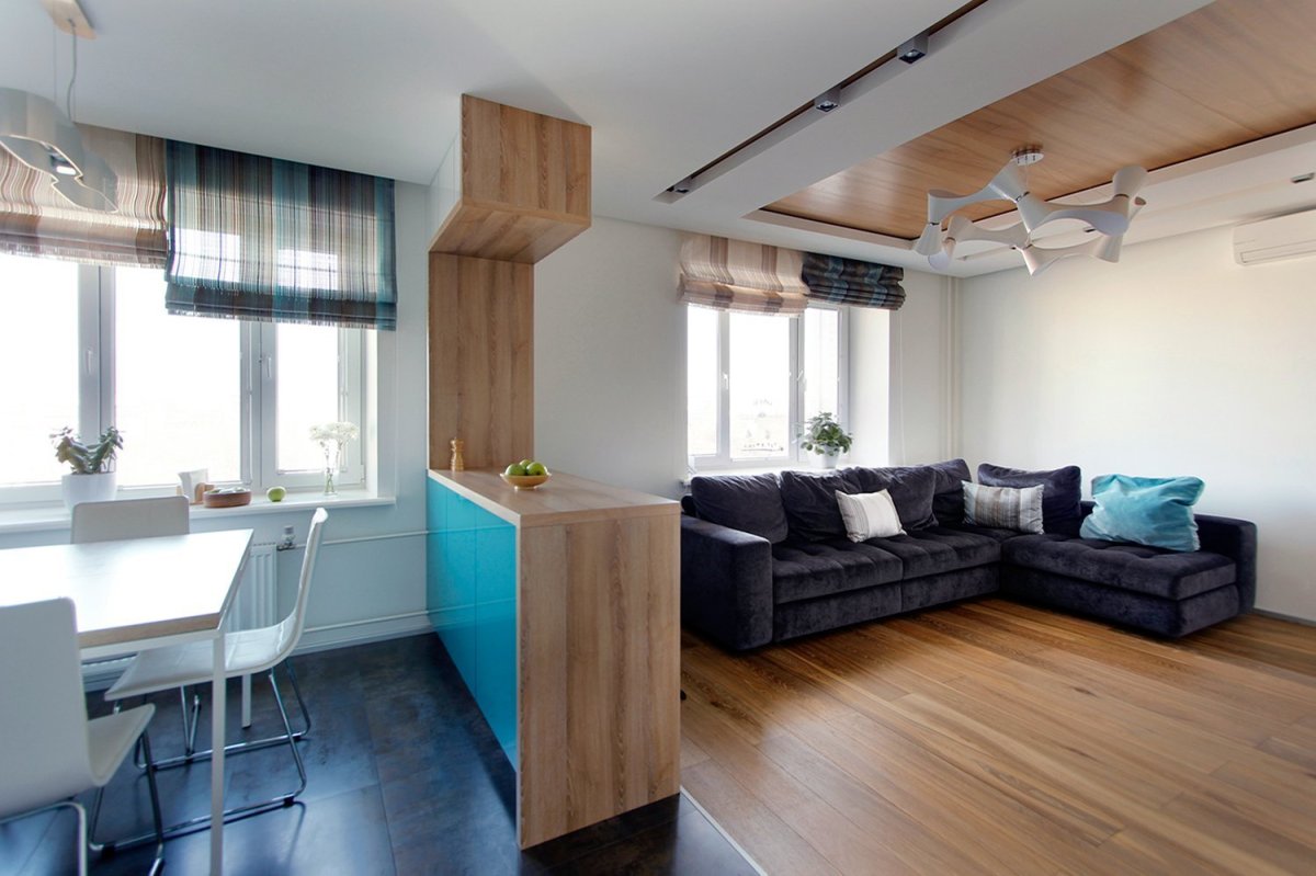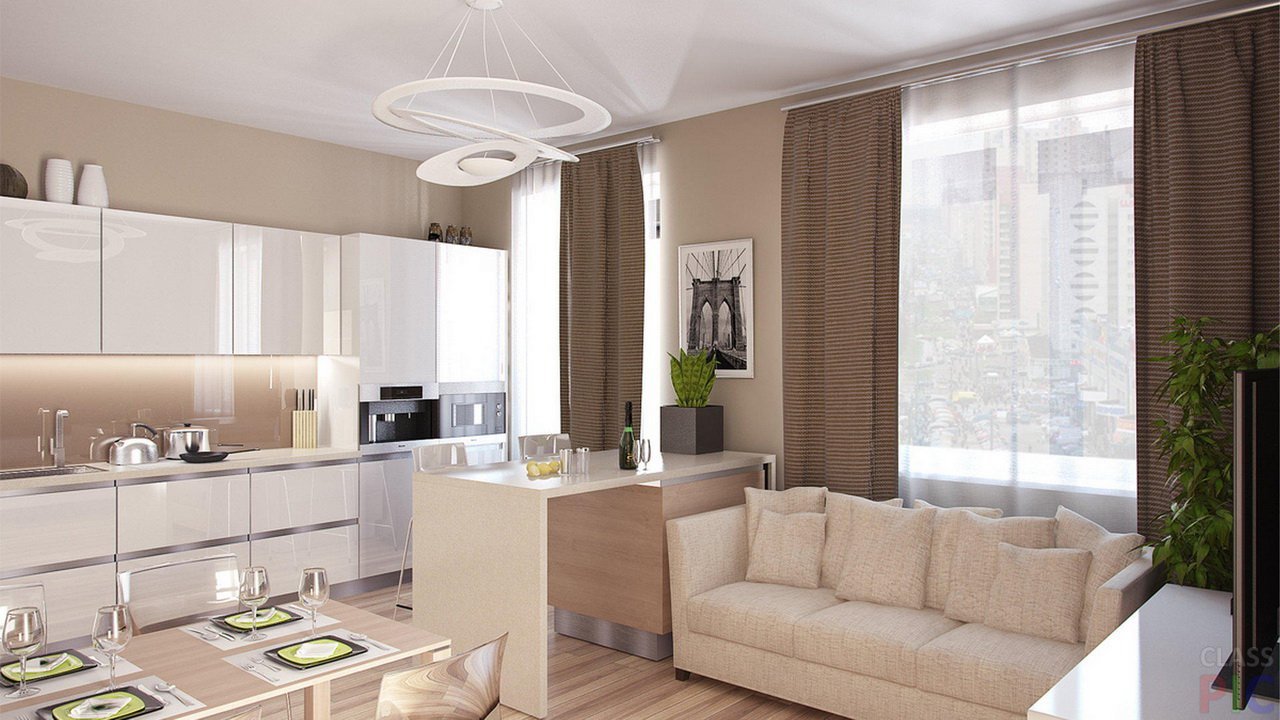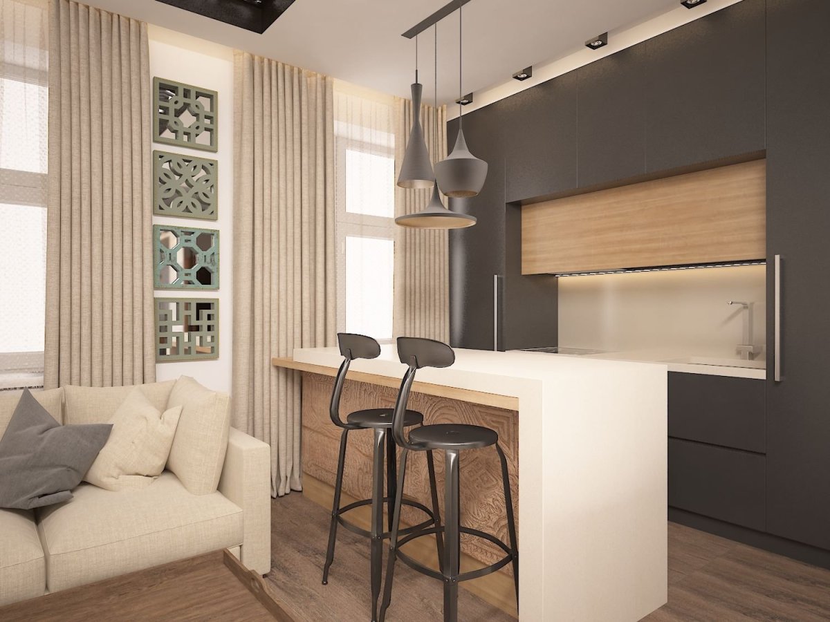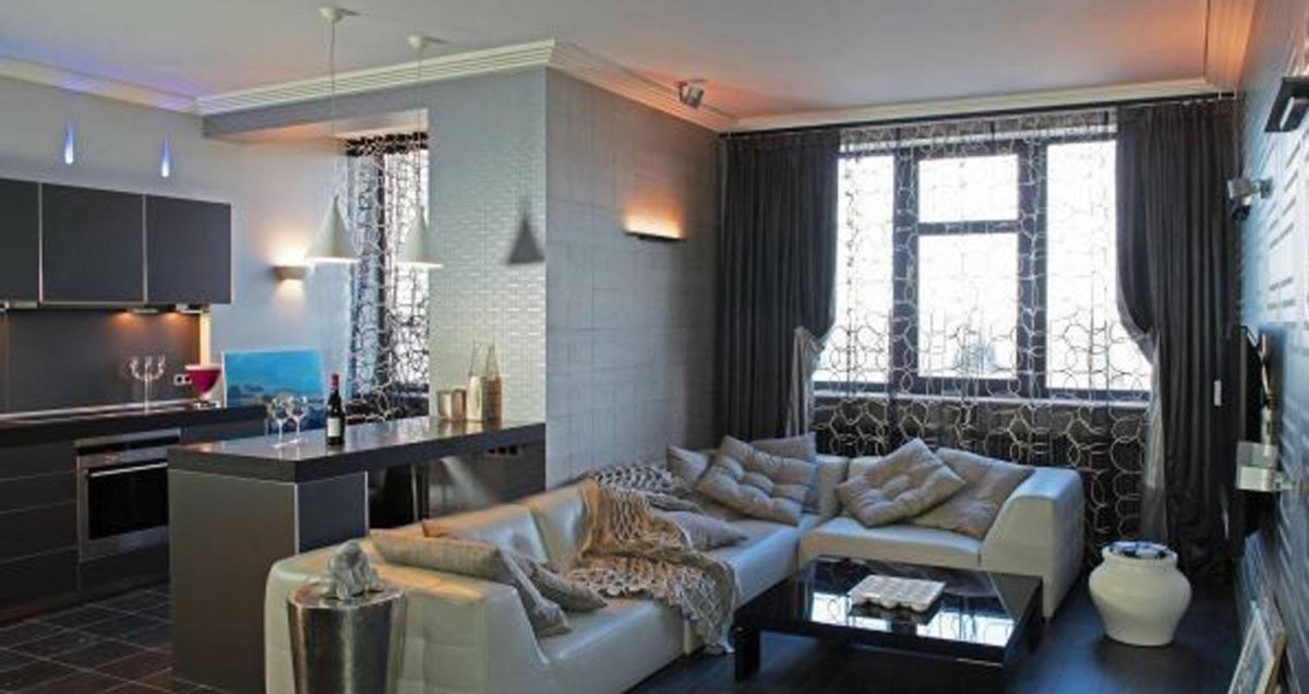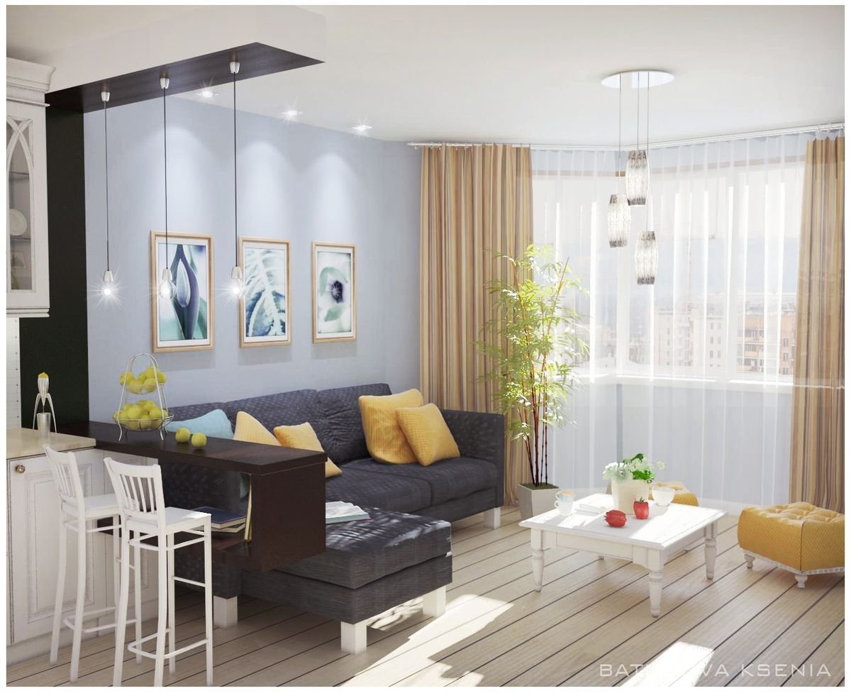 Кухня с гостинной 30кв м интерьер с барной стойкой