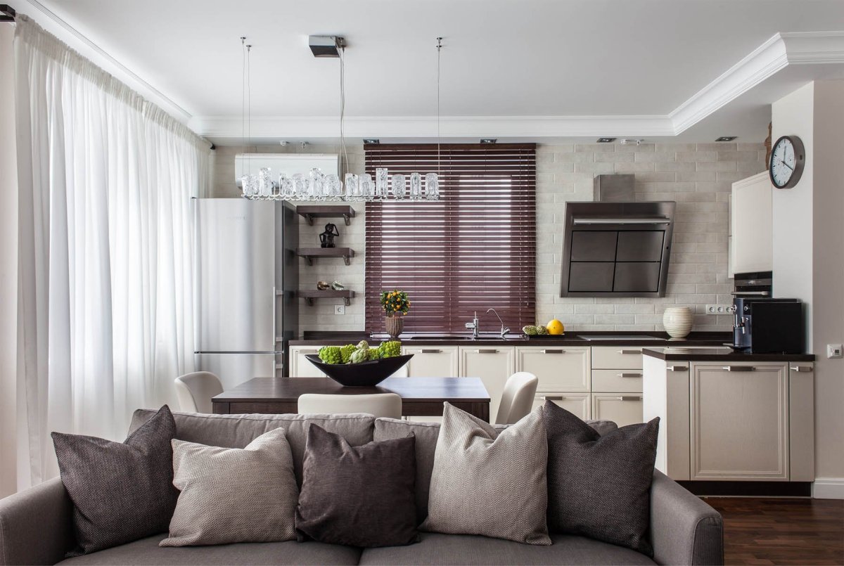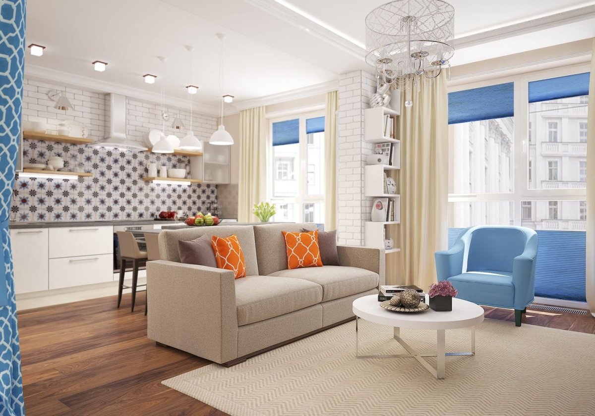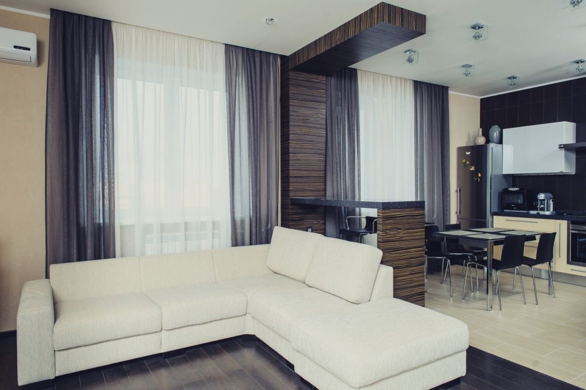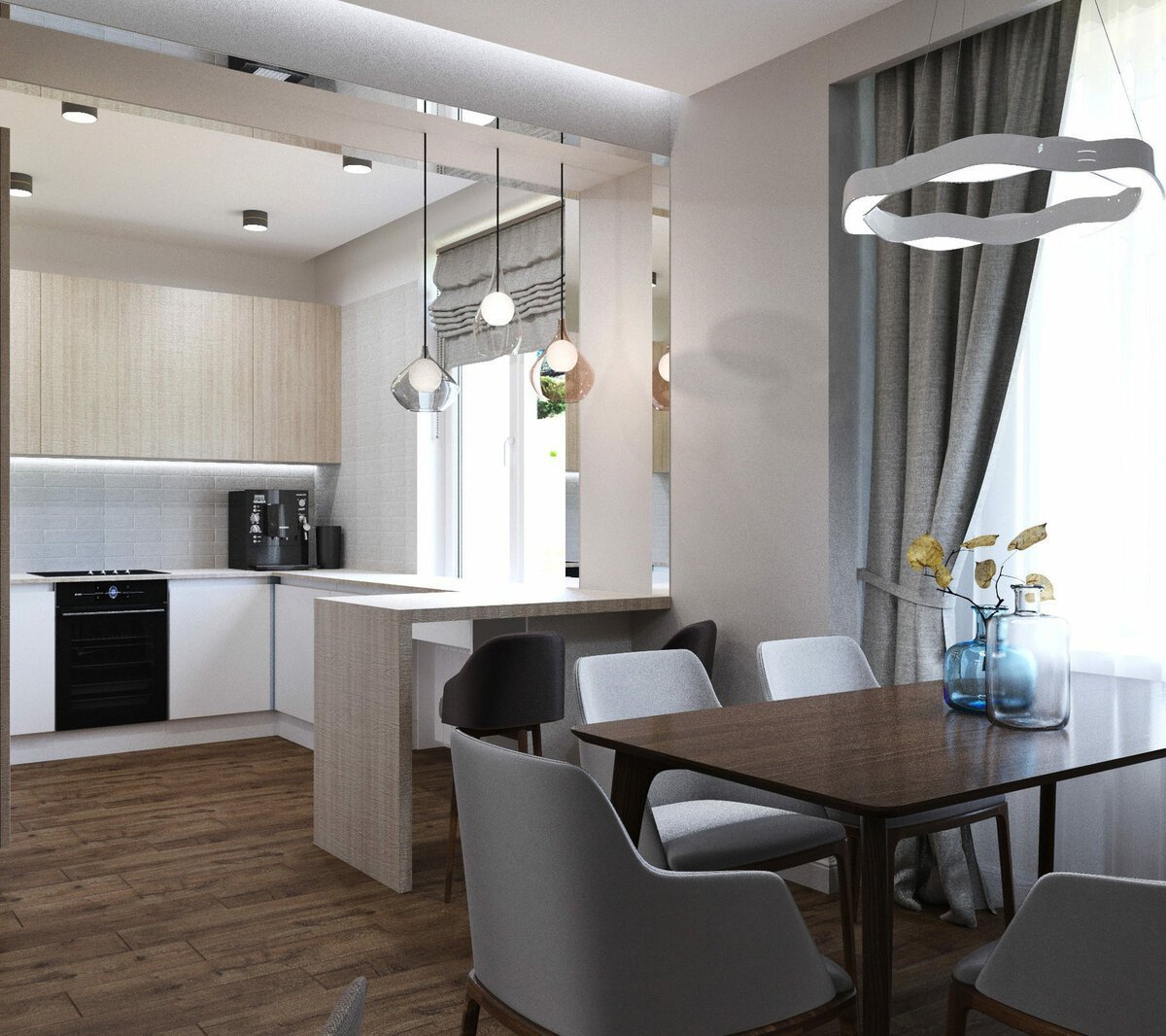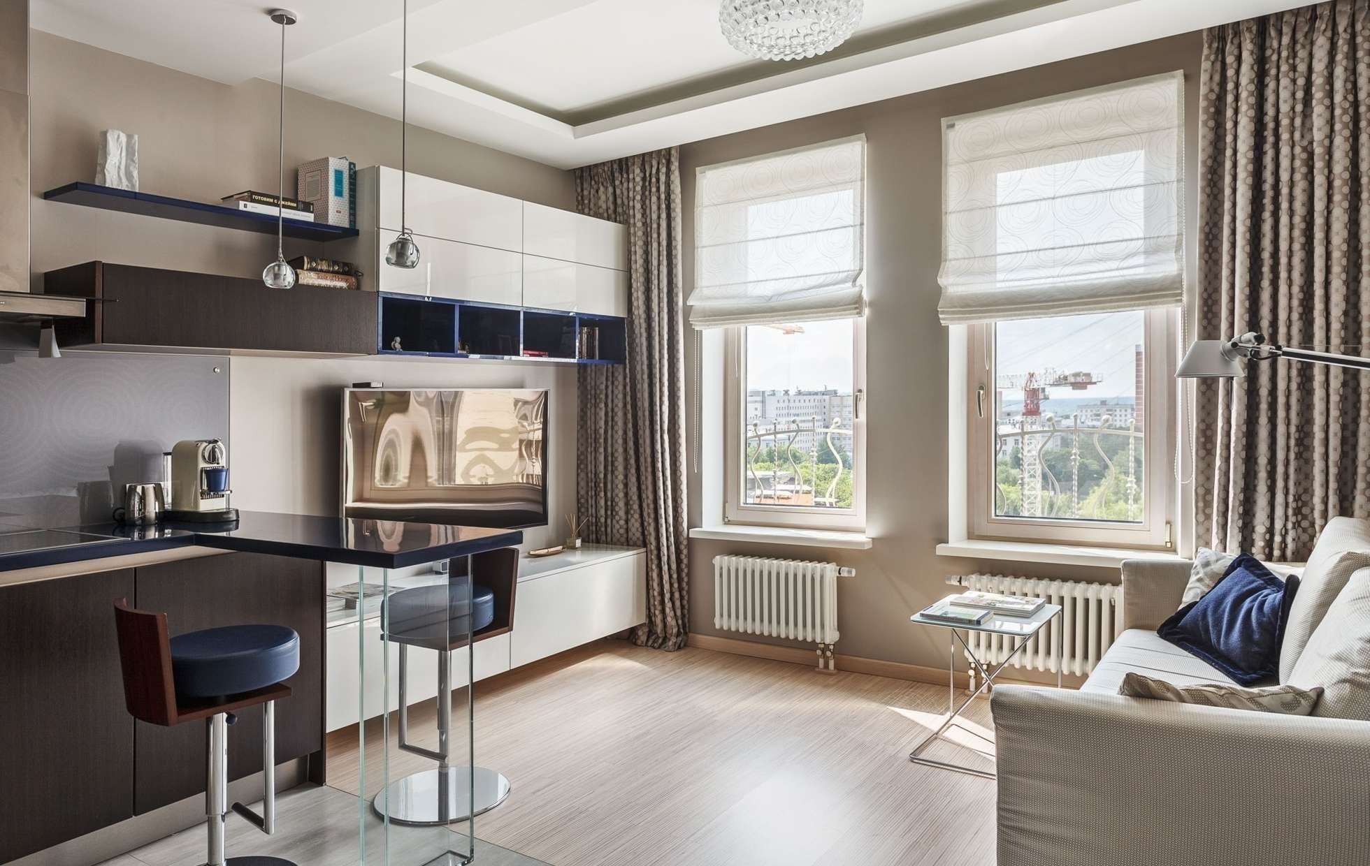 Кухня с гостинной 30кв м интерьер с барной стойкой