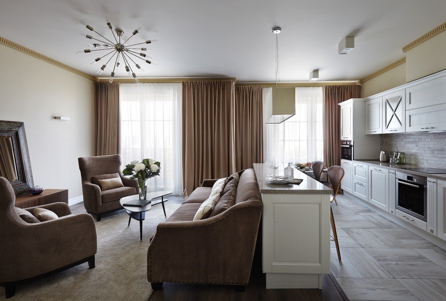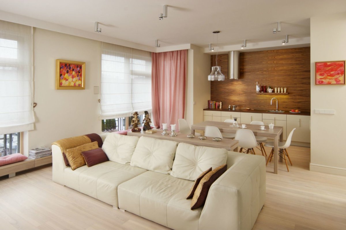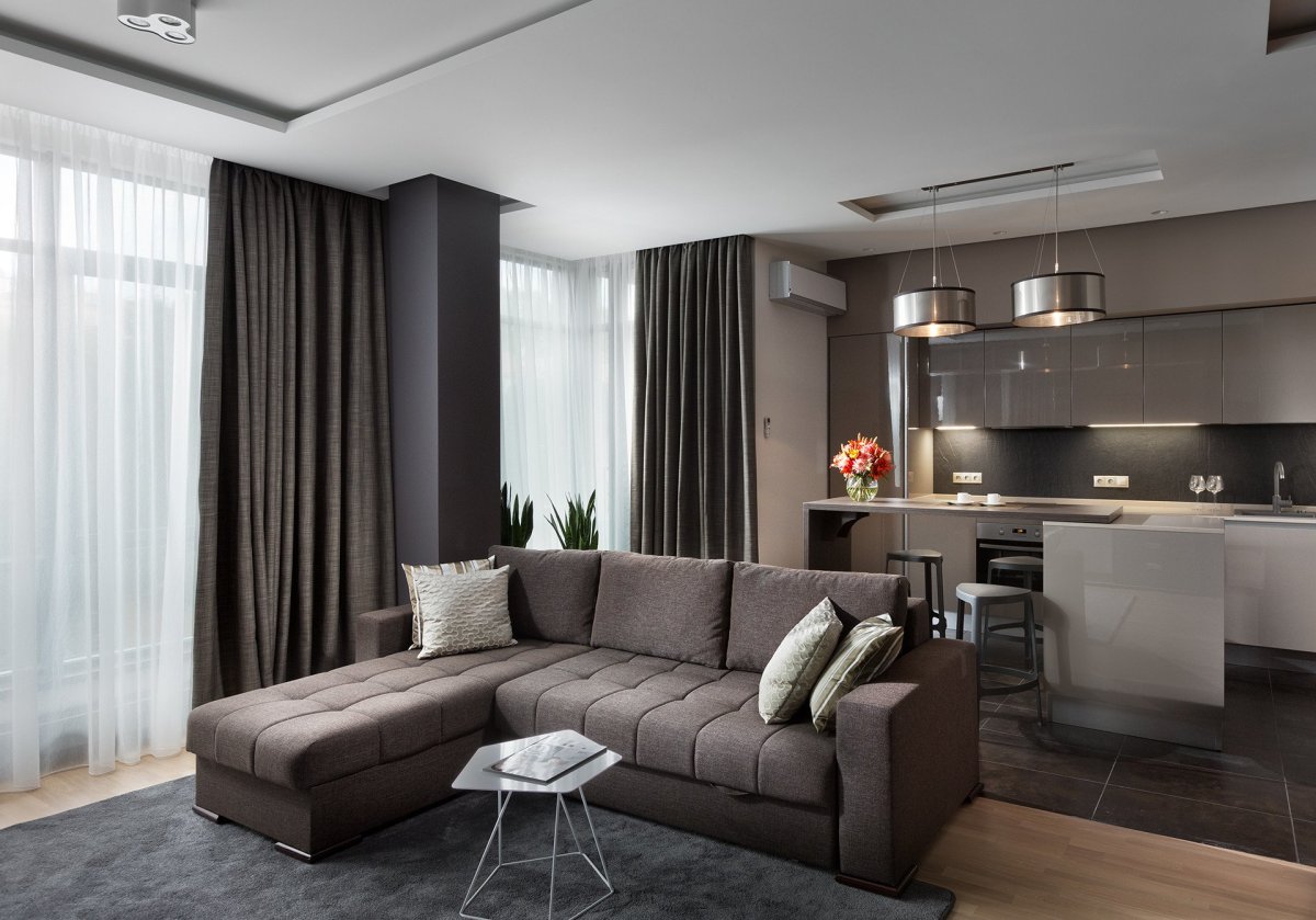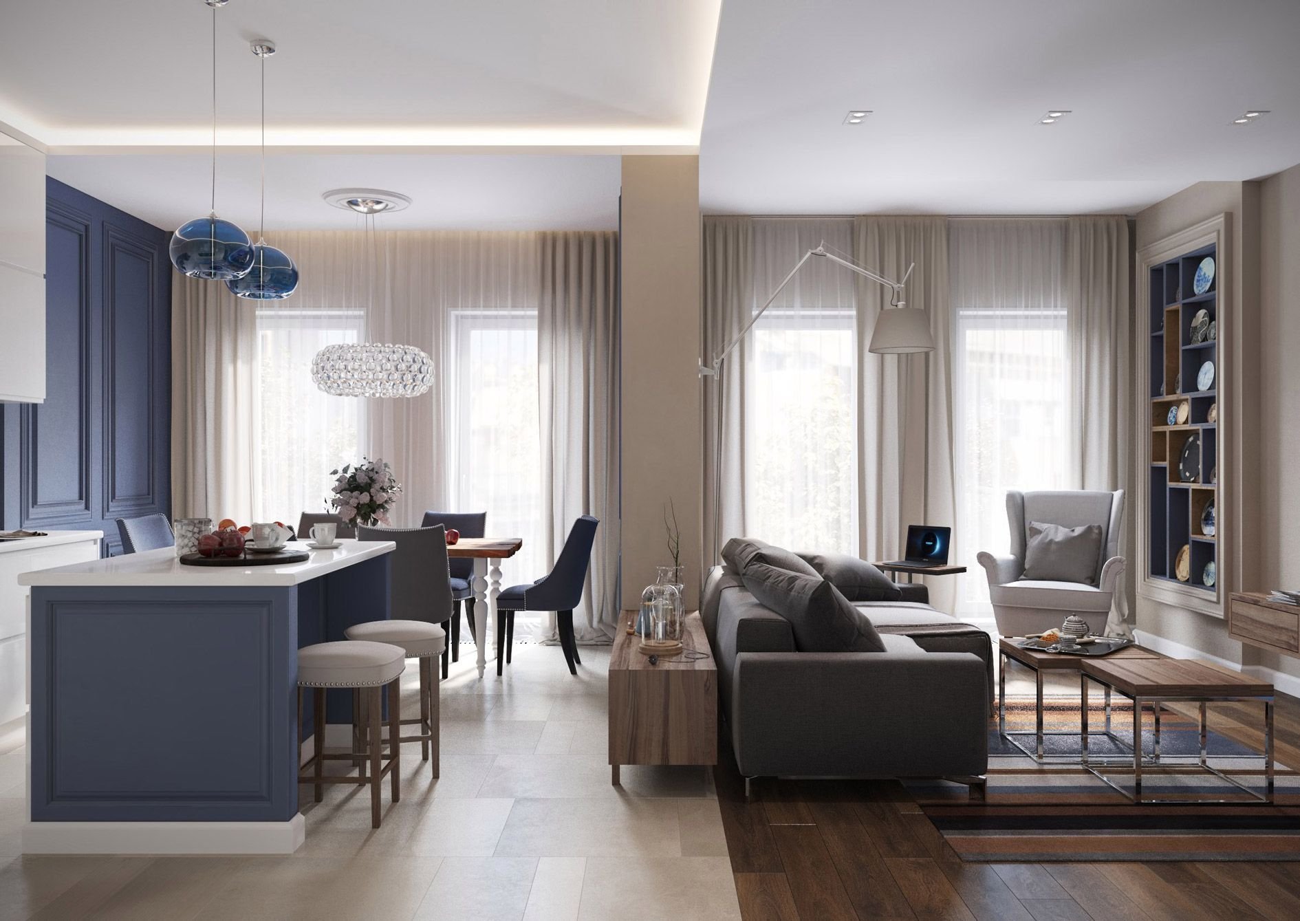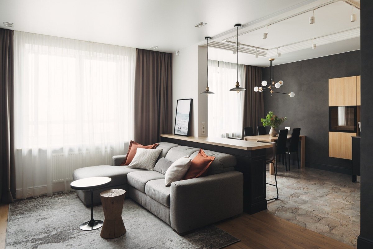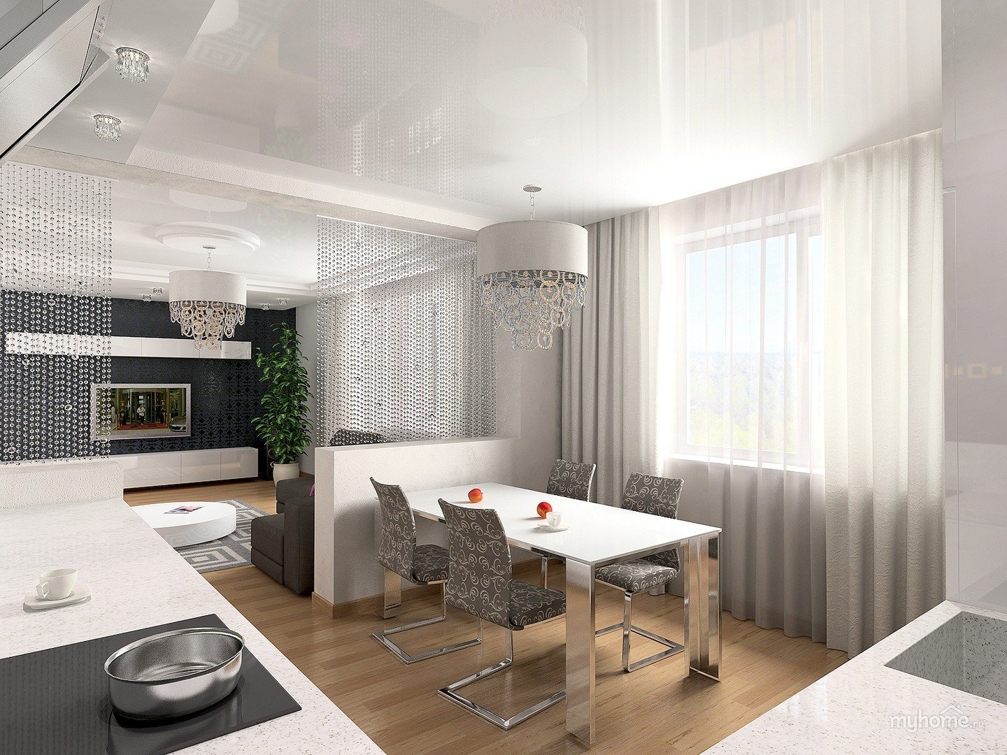 Кухня с гостинной 30кв м интерьер с барной стойкой