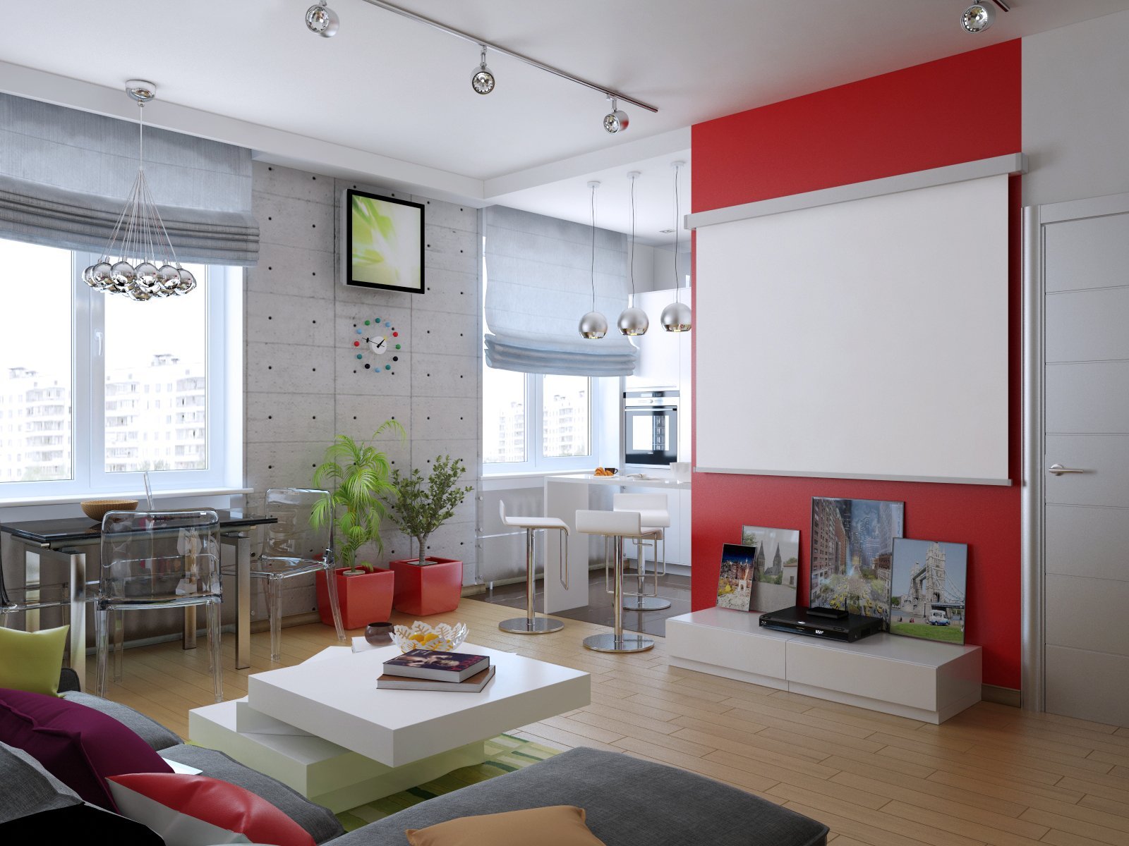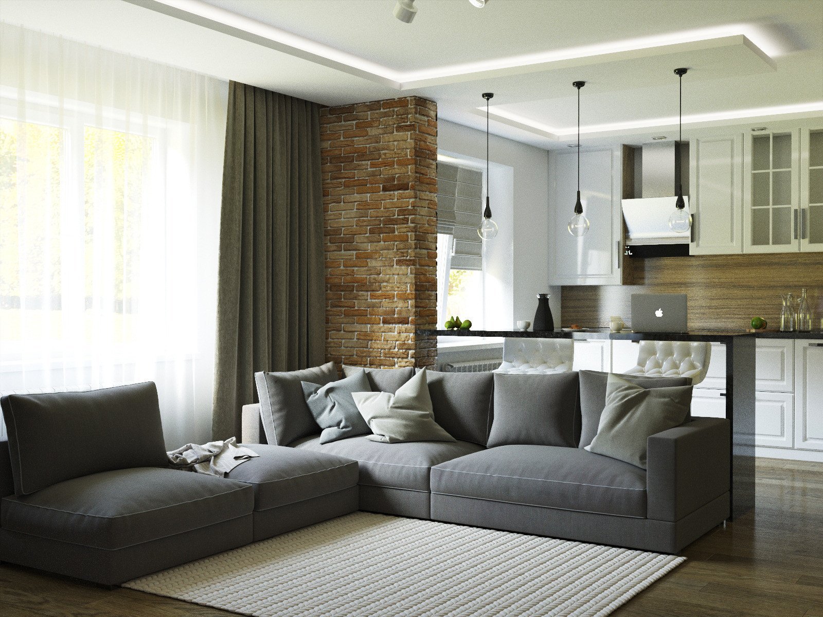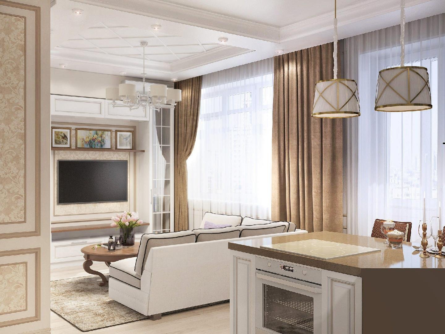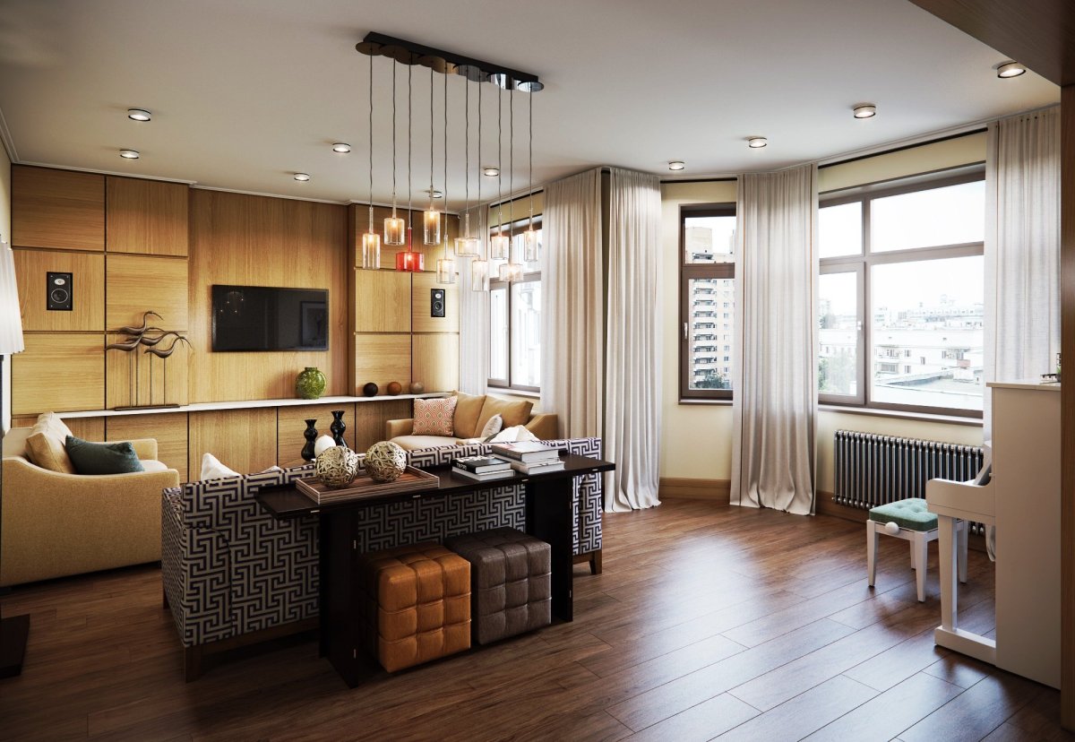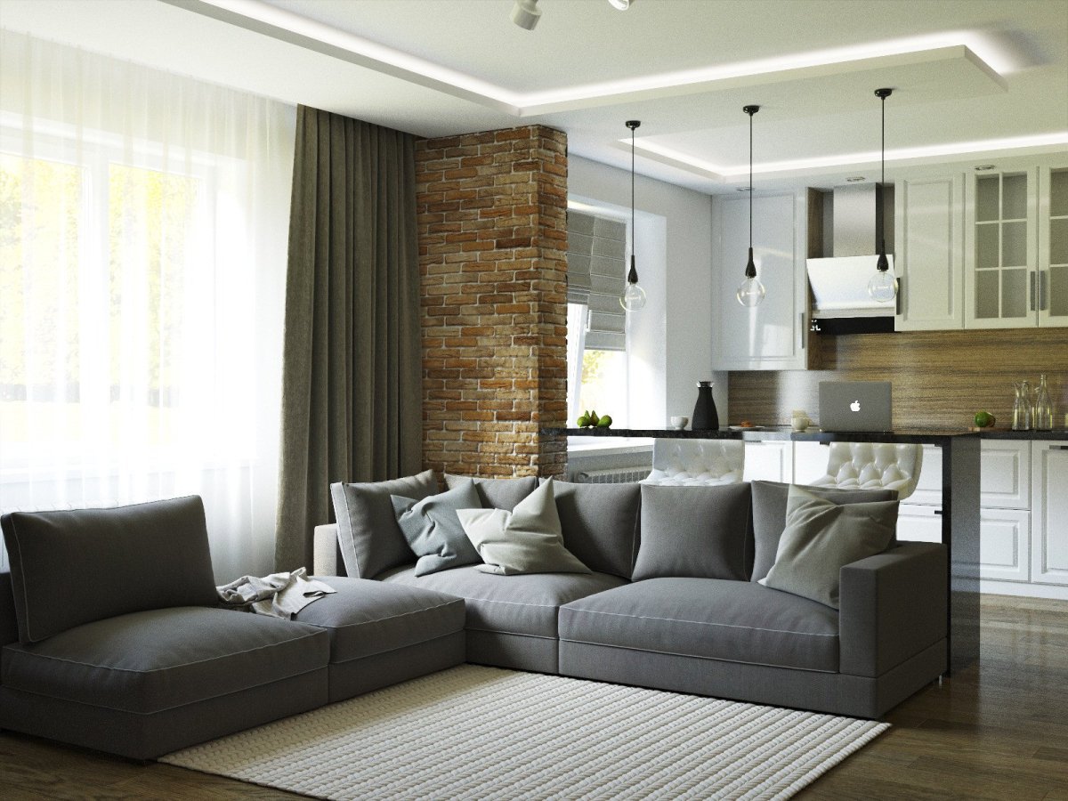 Кухня с гостинной 30кв м интерьер с барной стойкой