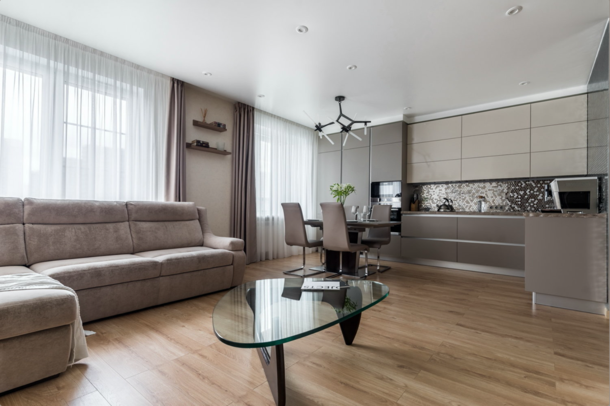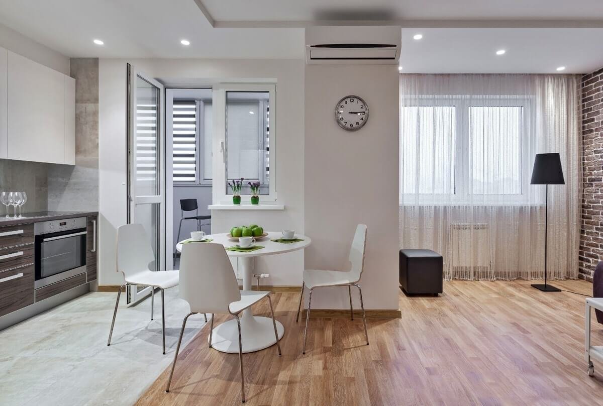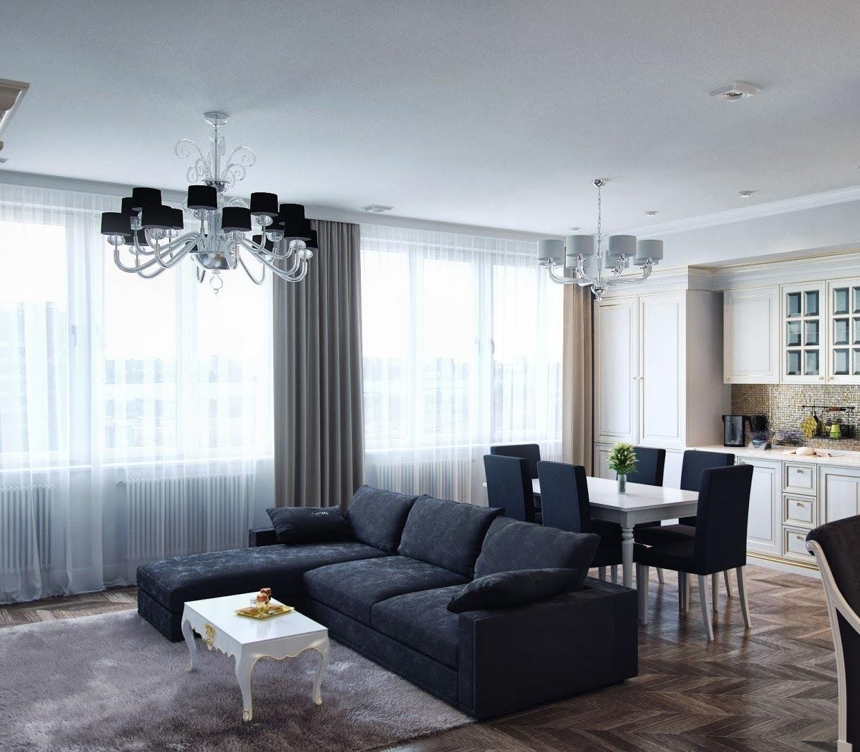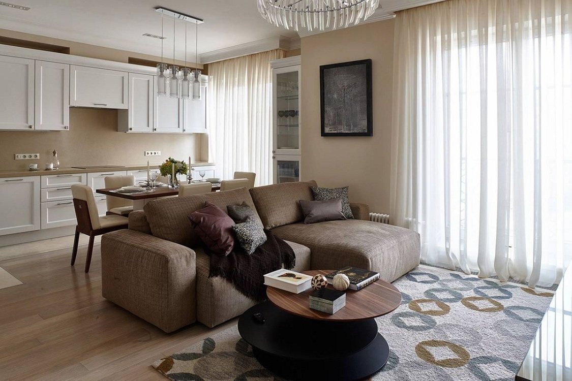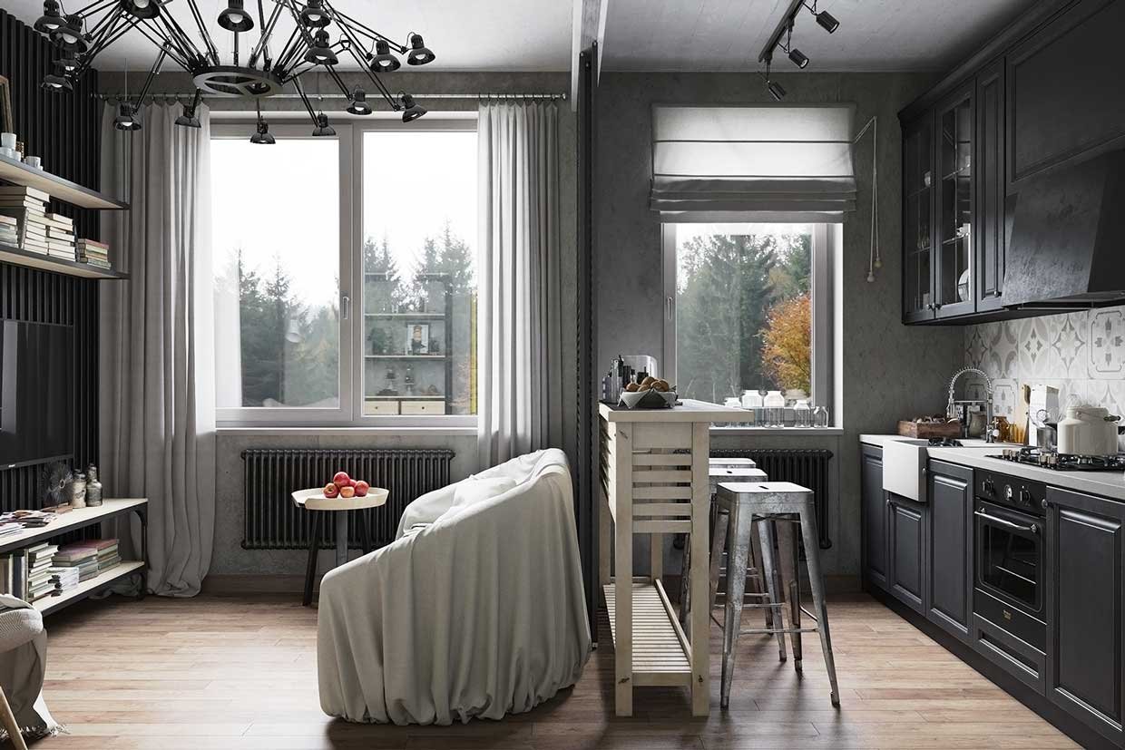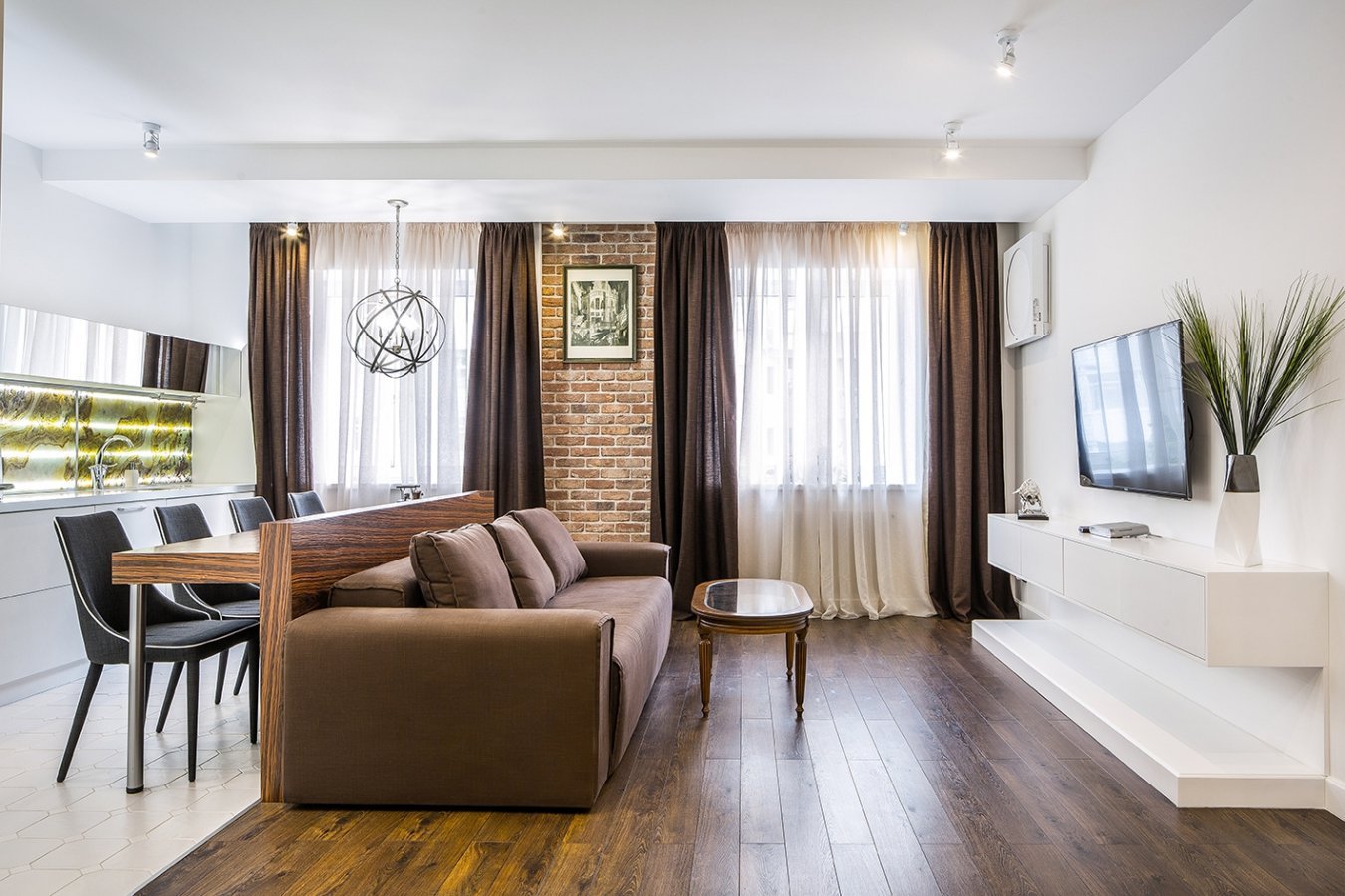 Кухня с гостинной 30кв м интерьер с барной стойкой