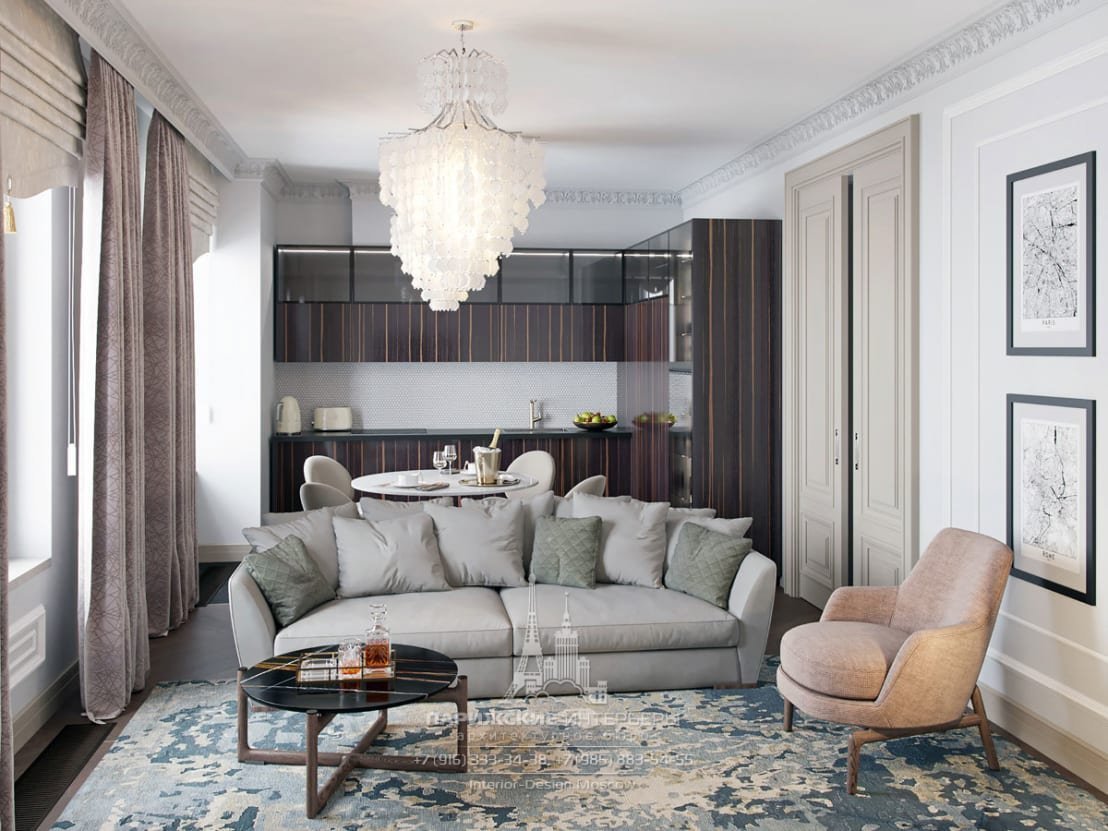 Неоклассика гостиная 20кв