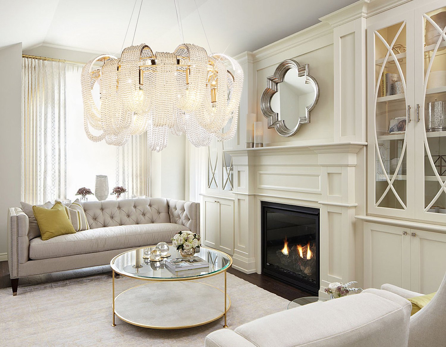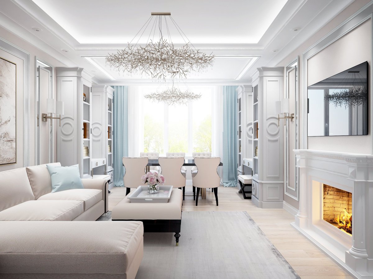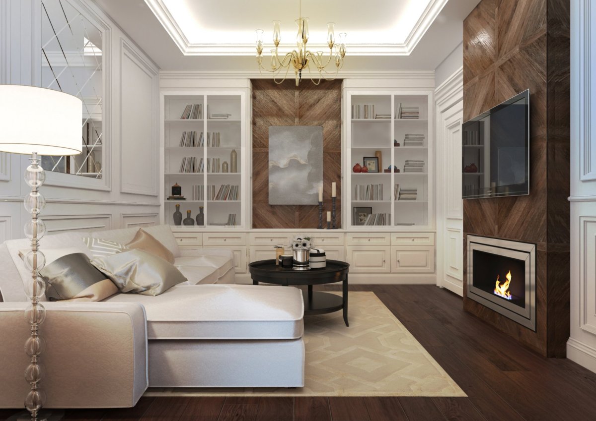 Гостиная Неоклассика светлая с камином