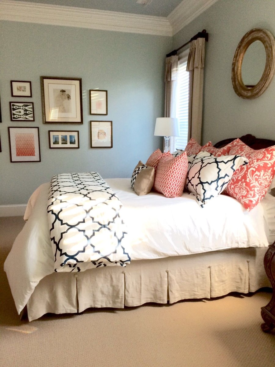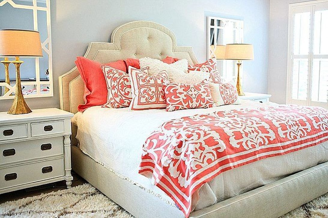Коралловый цвет в интерьере спальни