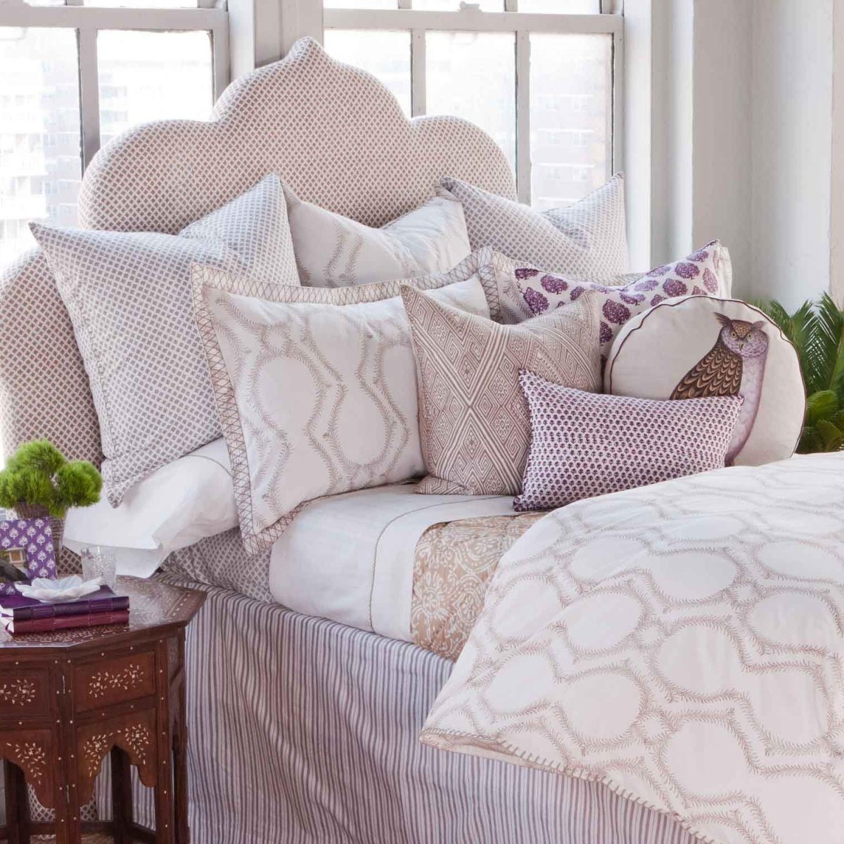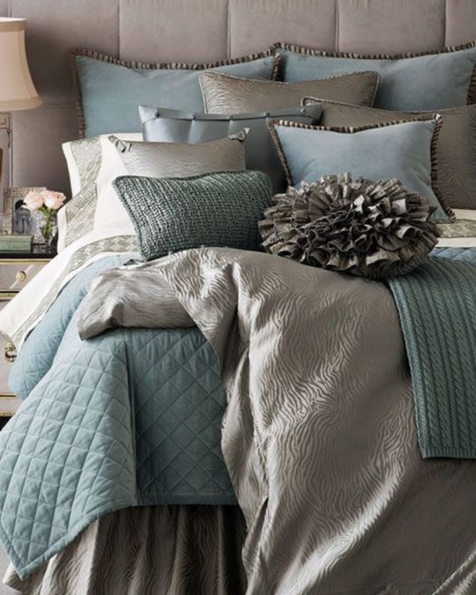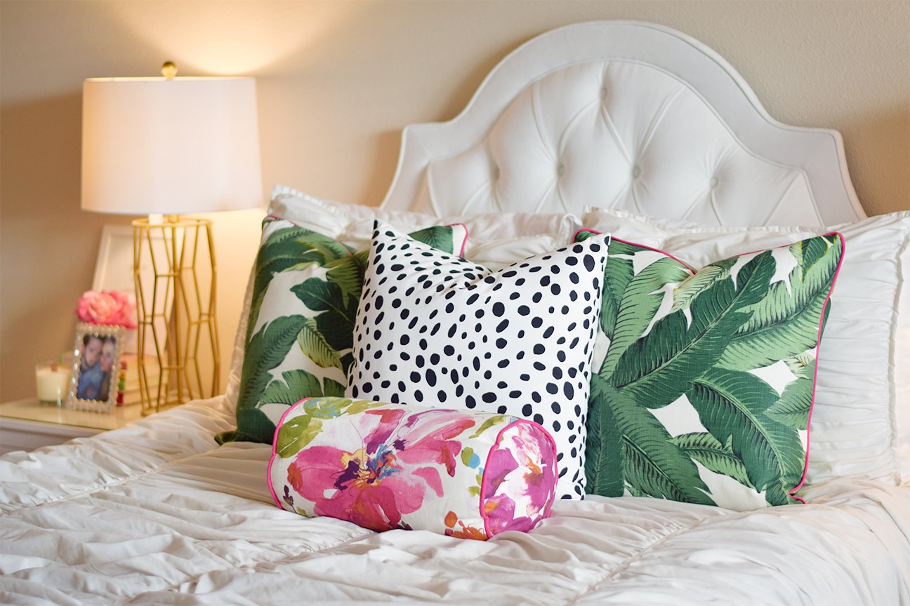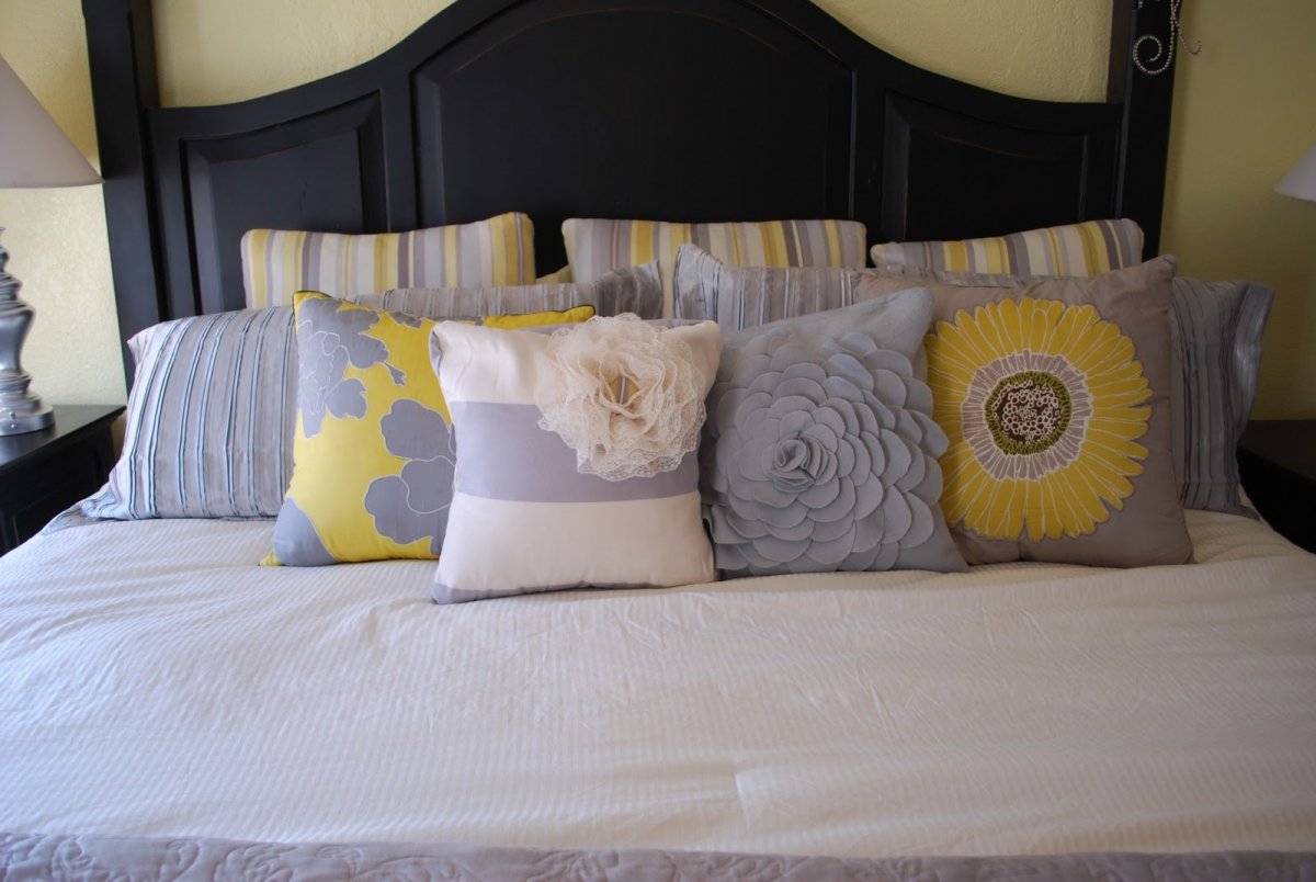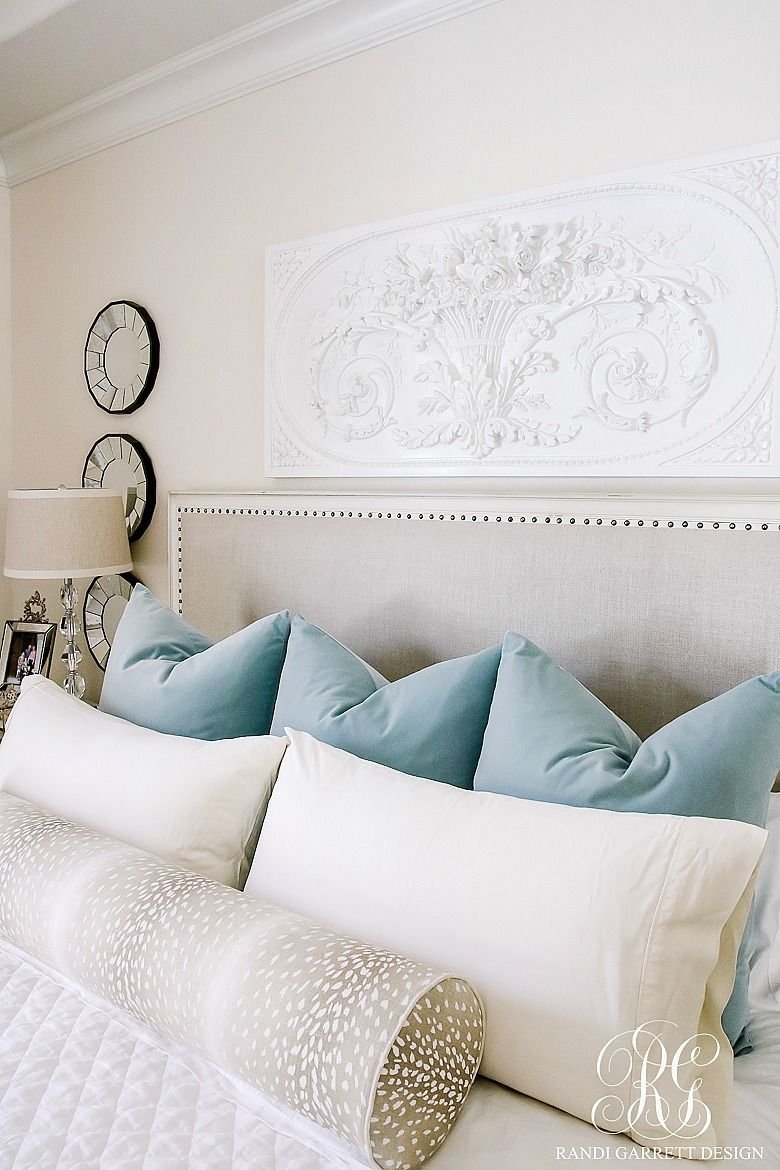 Украсить кровать подушками