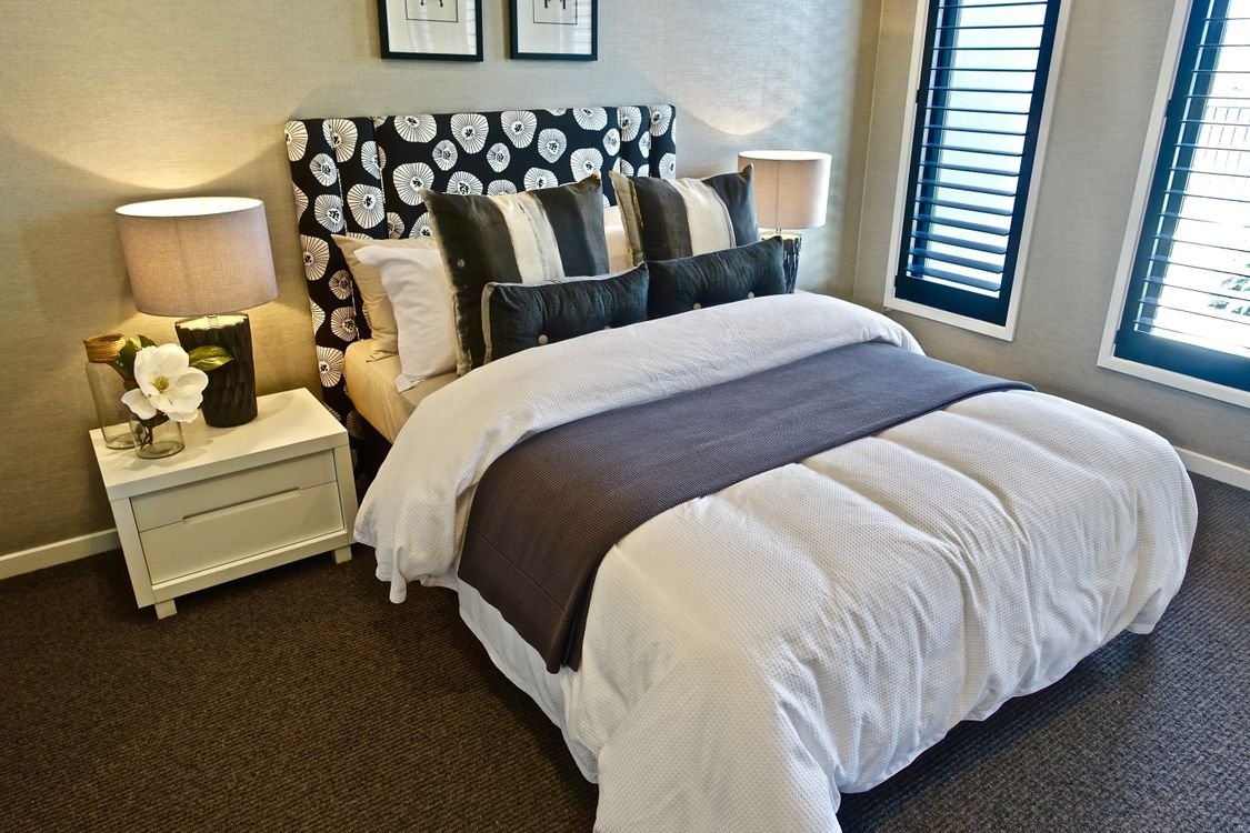 Подушки на кровати в интерьере