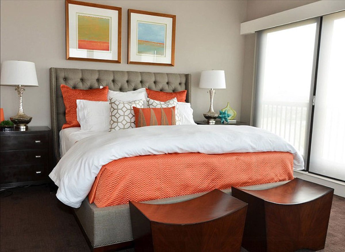 Спальня в оранжевых тонах