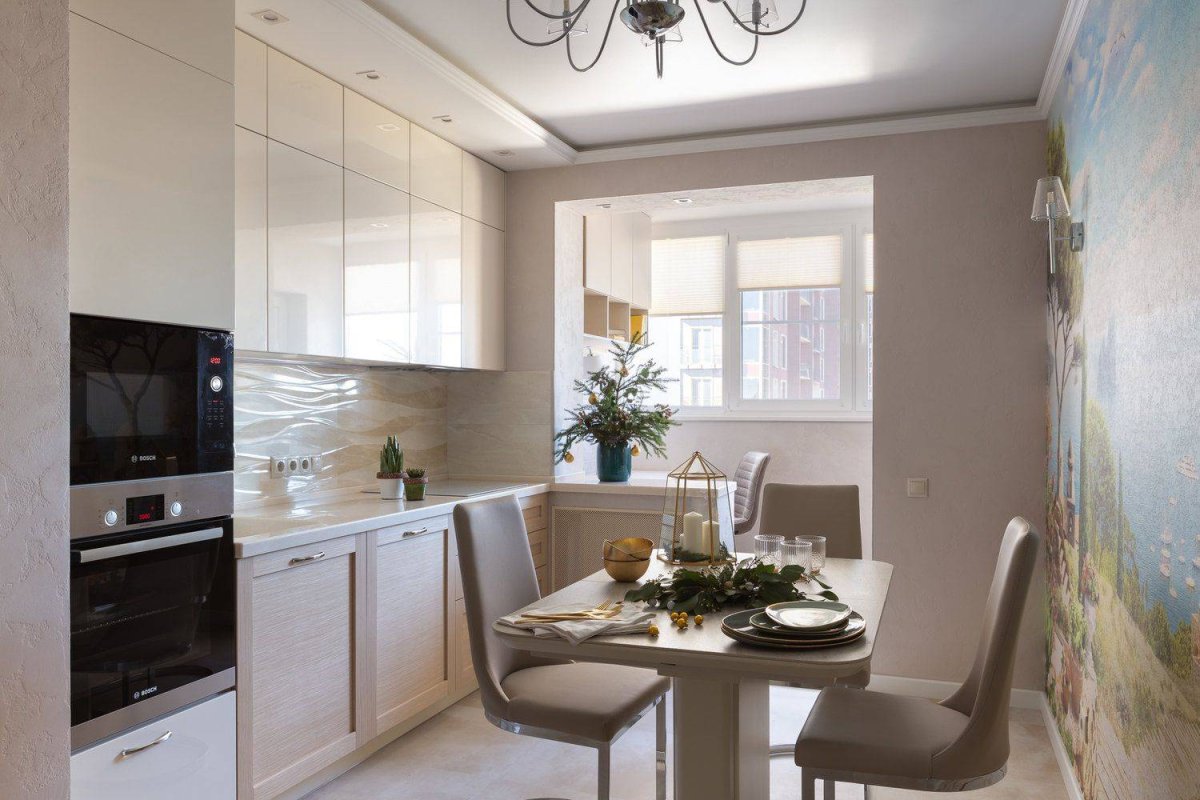 Интерьер кухни 11м2 с выходом на балкон с диваном